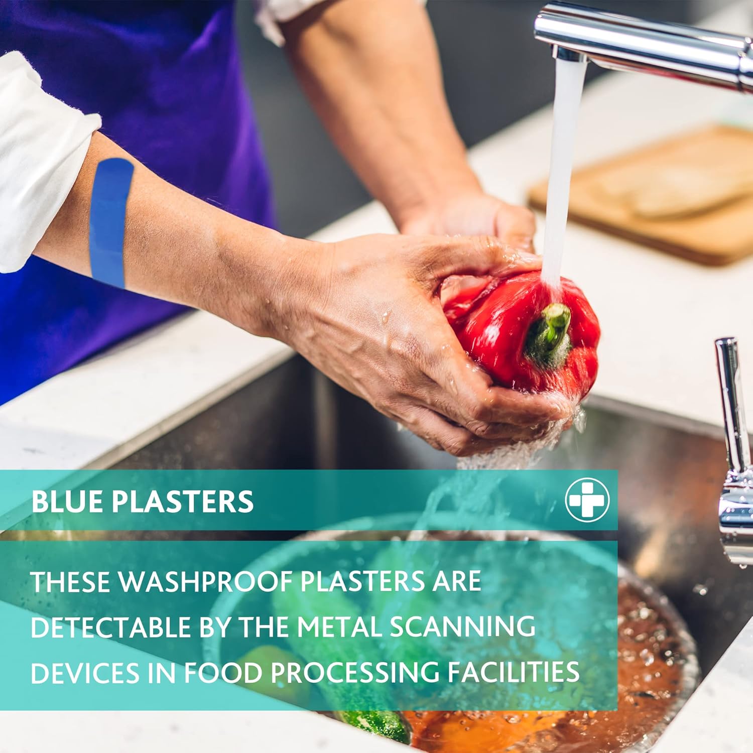 Visually Detectable Design: The plasters come in a bright blue color, making them easily noticeable if they ever come into contact with food, ensuring safety in food preparation areas