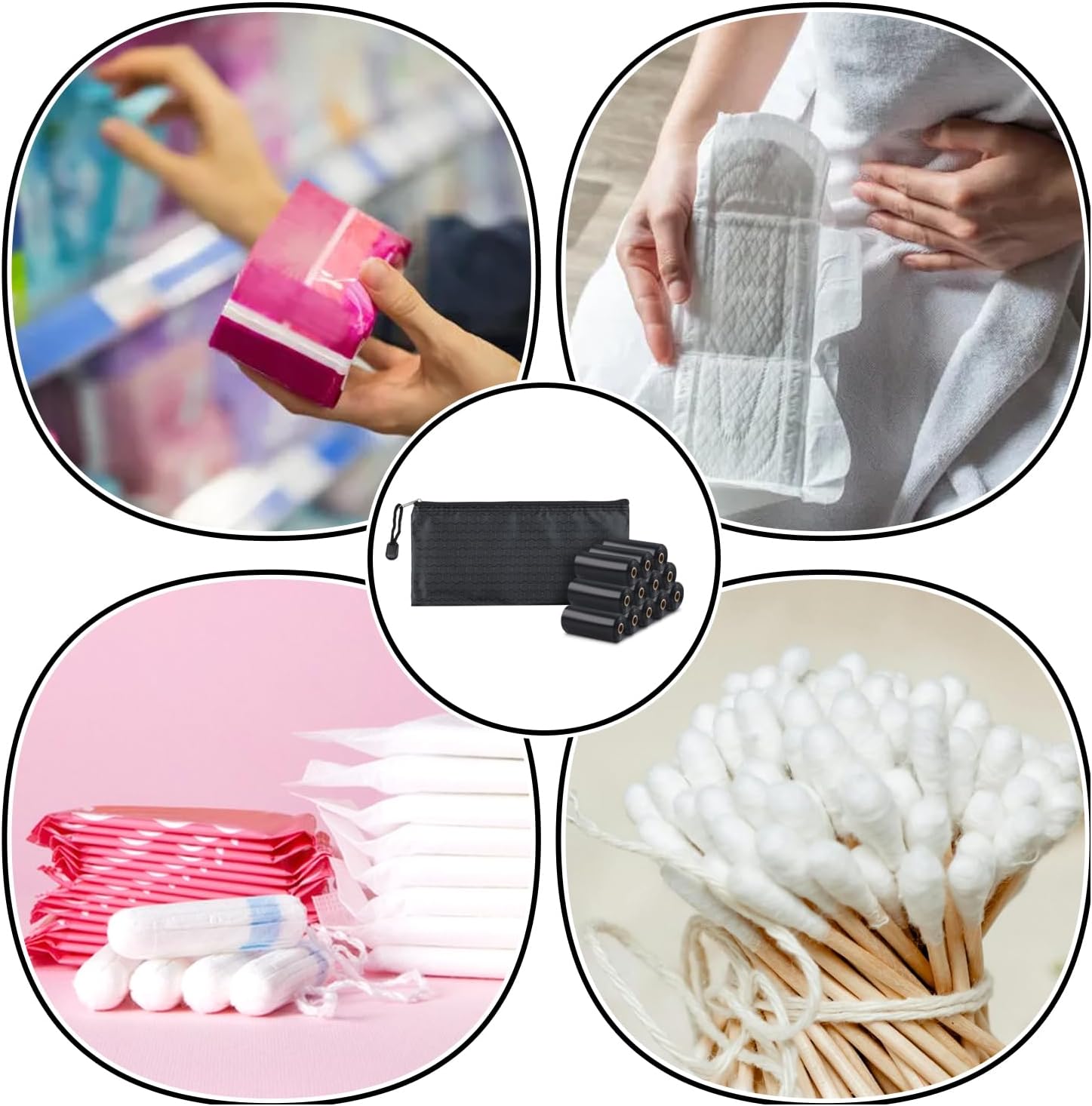 disposal sanitary napkin bags, feminine disposable privacy protection sanitary tampons menstrual liners bag, 12 roll personal disposal hygiene period diapers bag for women with zipper bags (black)Disposal Sanitary Napkin Bags, Feminine Disposable Privacy Protection Sanitary Tampons Menstrual Liners Bag, 12 Roll Personal Disposal Hygiene Period Diapers Bag for Women with Zipper Bags (Black)