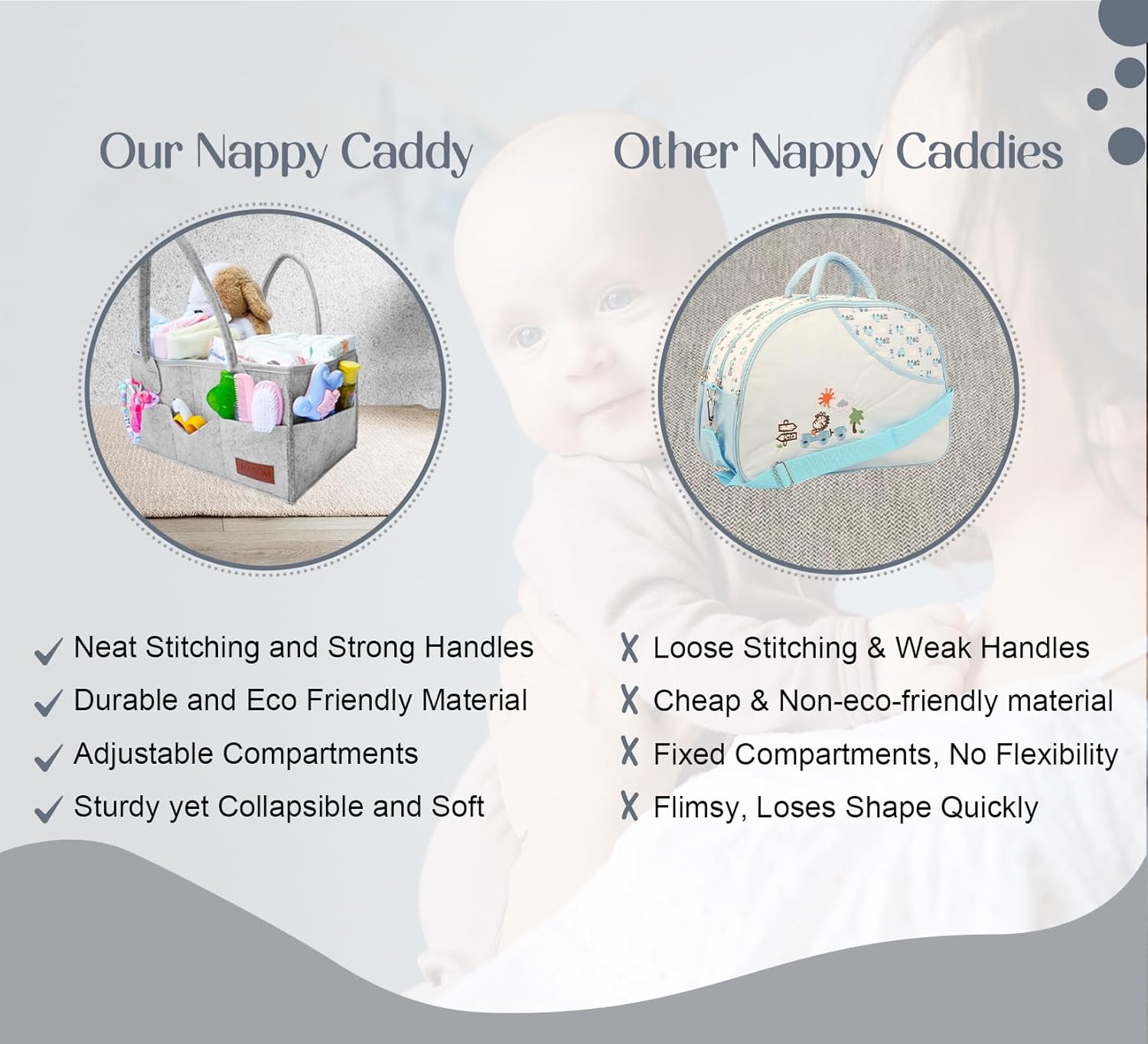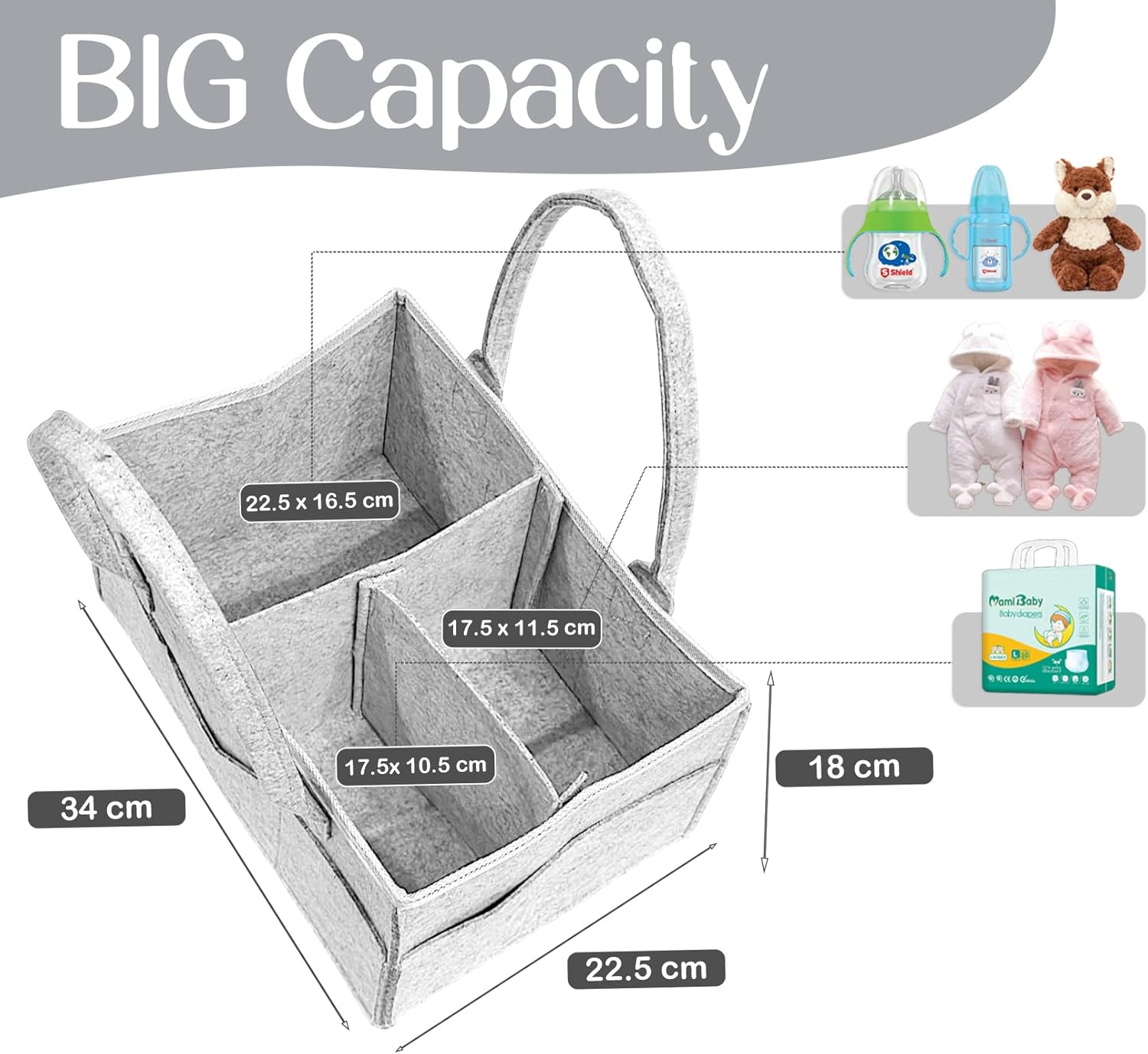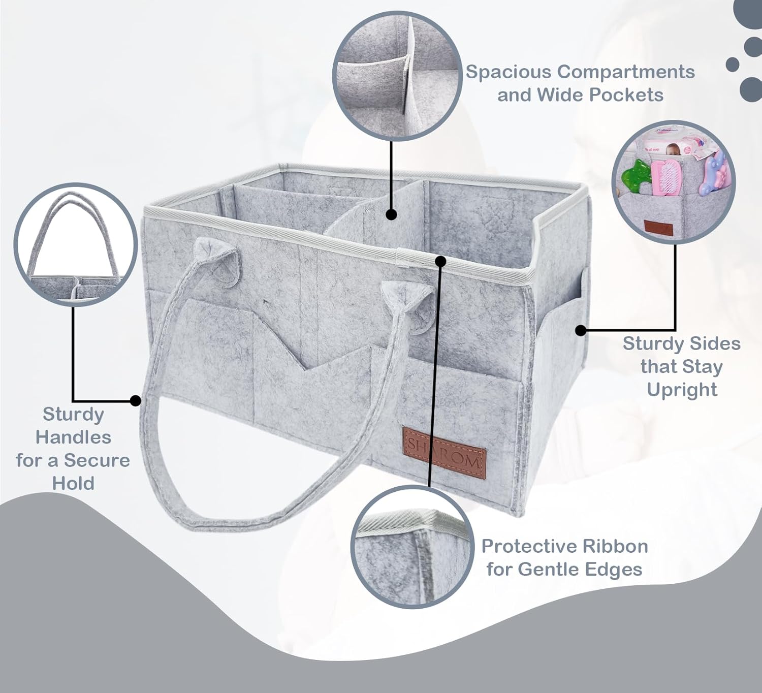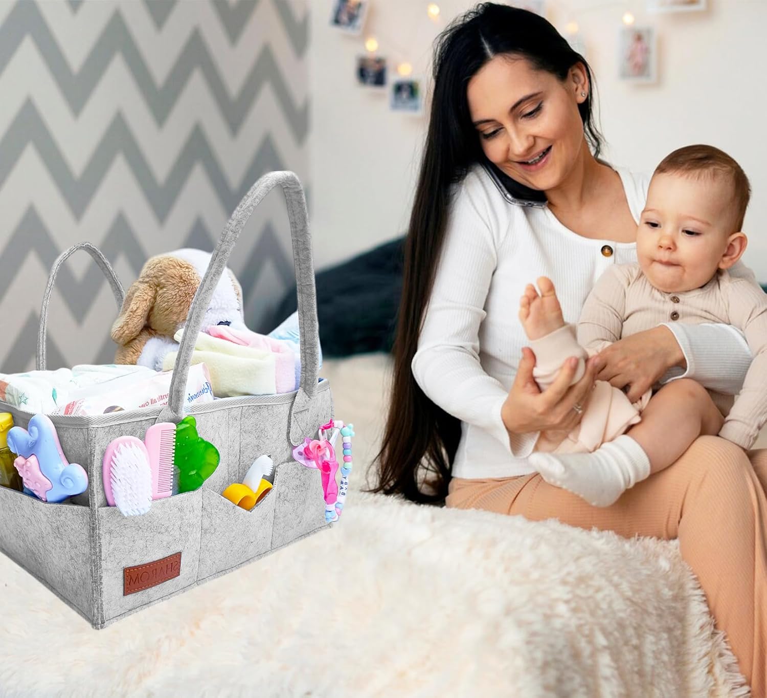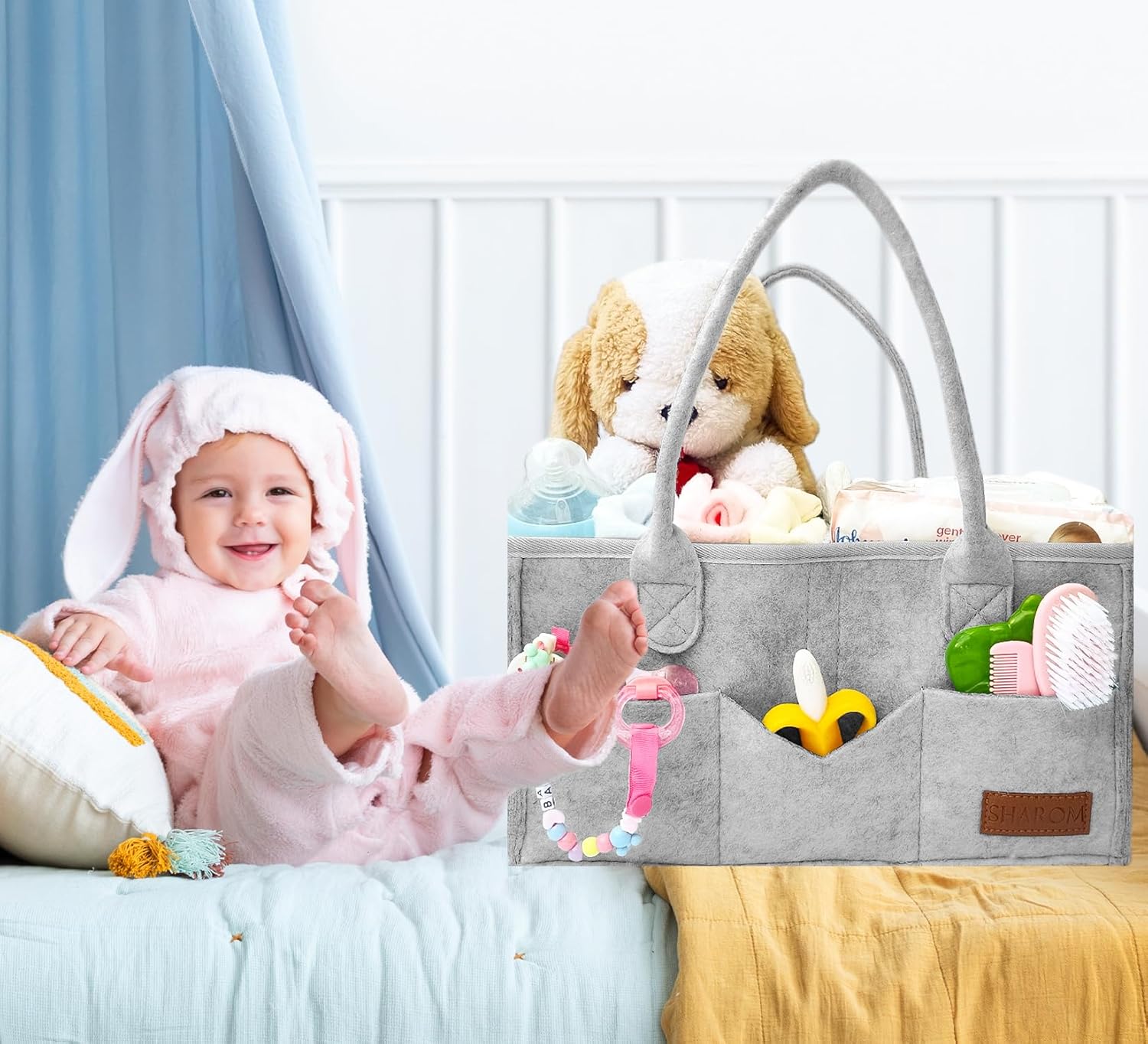 [ Built to Last – Sturdy, Spacious & Portable ] Made from extra-thick 3mm felt, this baby caddy organiser offers better strength than thinner versions. Reinforced stitching and soft handles make it durable yet easy to carry at home or on the go