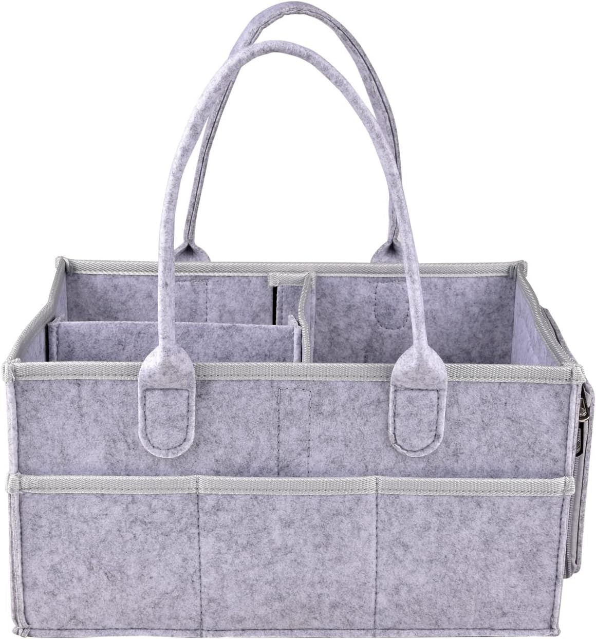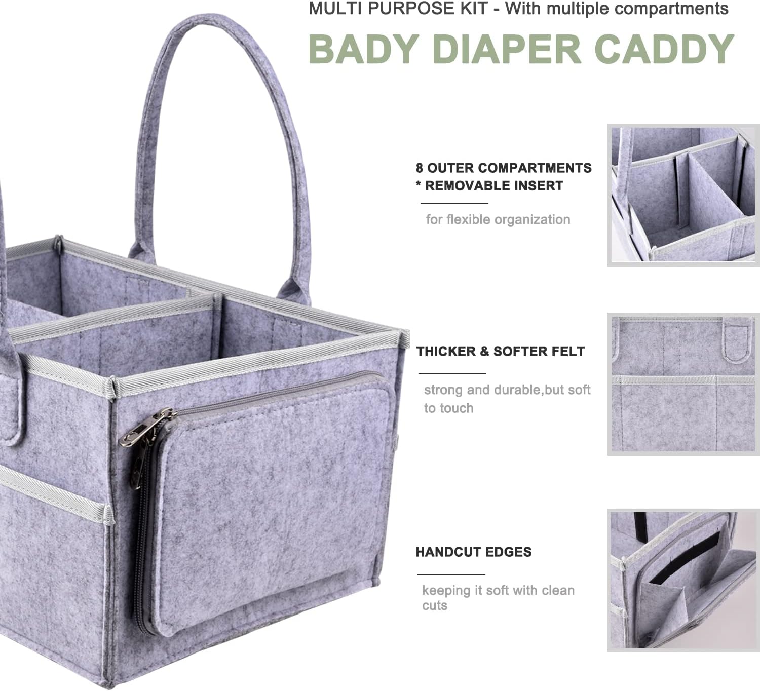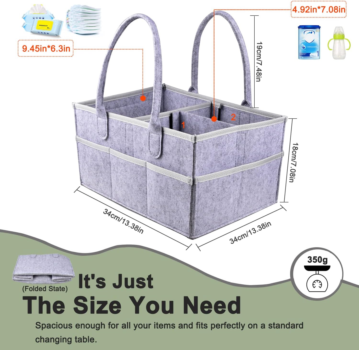 👍High-Quality Fabric: Felt. The practical baby diaper storage bag is made of high-quality felt fabric,with removable finishing inserts.