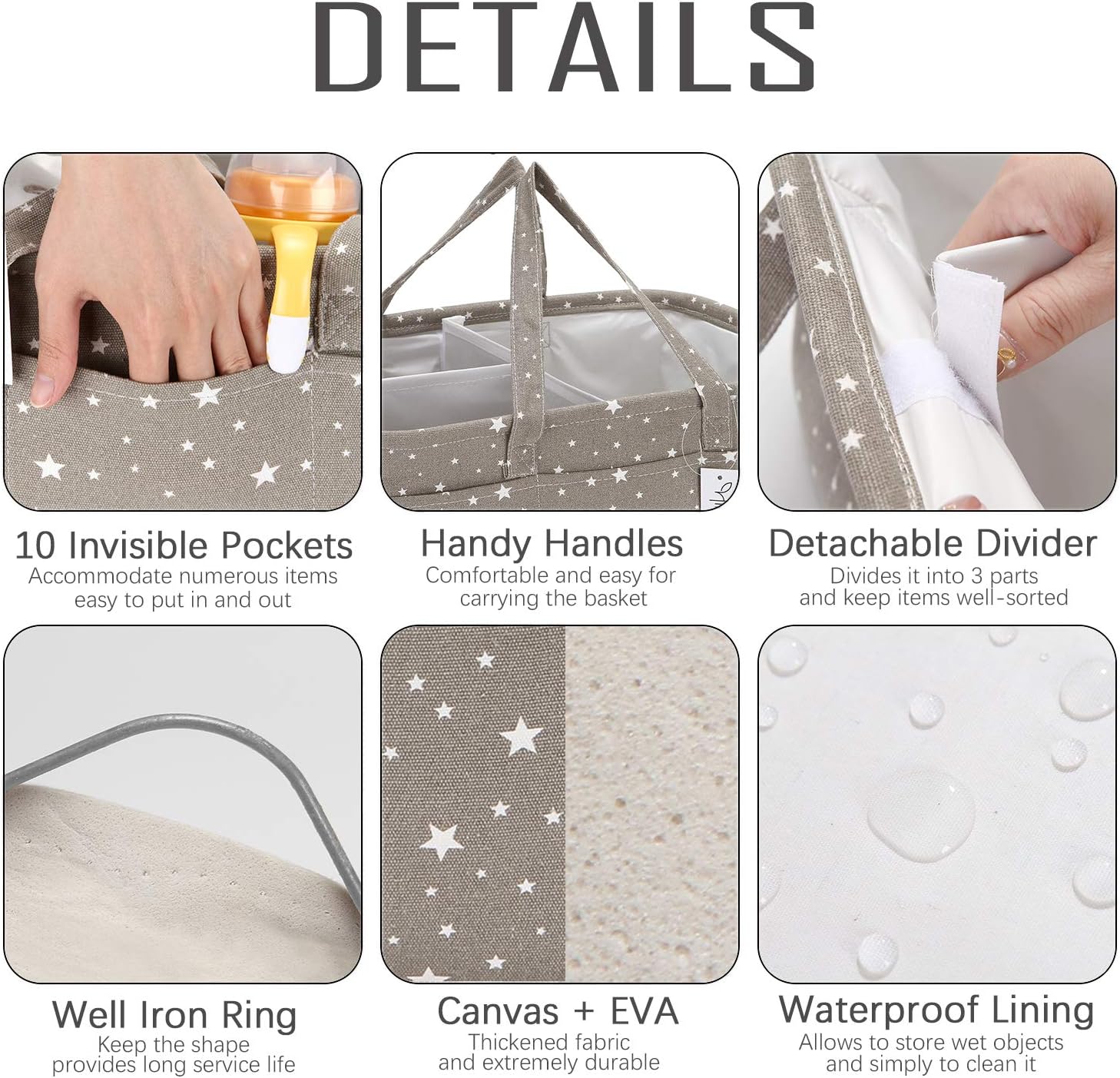 10 Invisible Pockets around the caddy provide added storage space for other baby products
