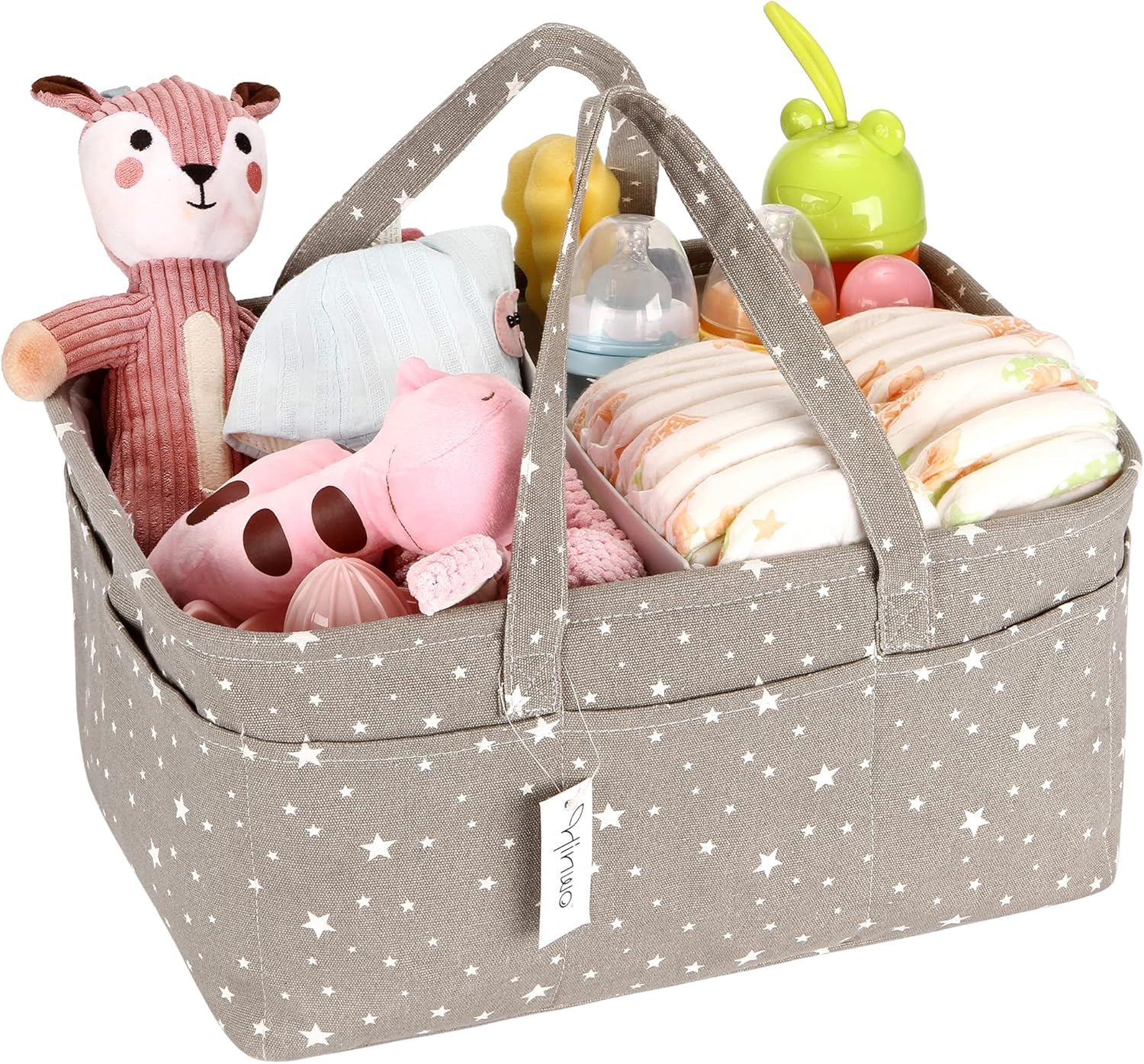 Hinwo Baby Diaper Caddy 3-Compartment Infant Nursery Tote Storage Bin Portable Car Organizer Newborn Shower Gift Basket with Detachable Divider and 10 Invisible Pockets for Diapers & Wipes