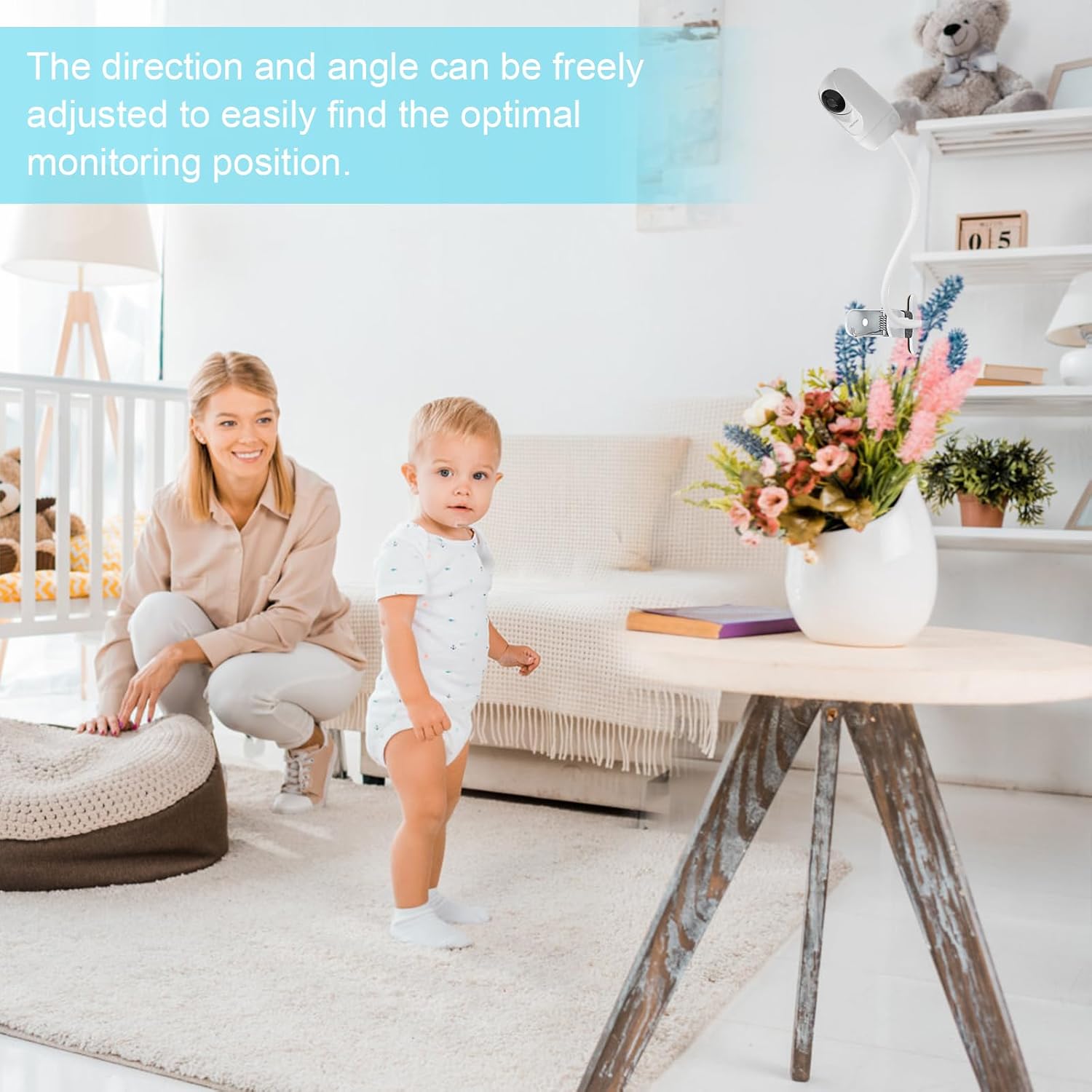 Flexible hold: this holder for Momcozy baby monitor allows optimal positioning of the camera around your baby thanks to any adjustable angle. The adjustable holder securely fixes your baby monitor and protects it from falling off.