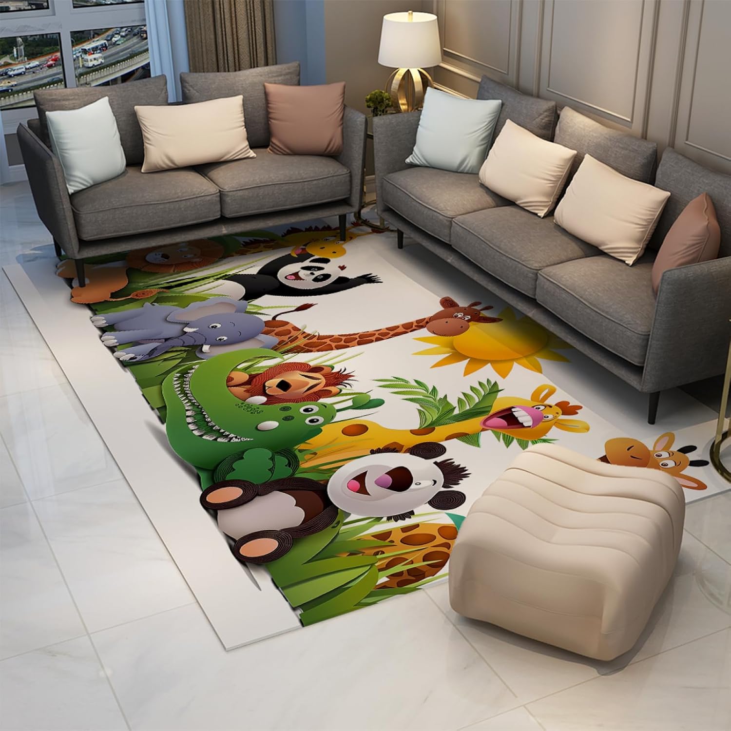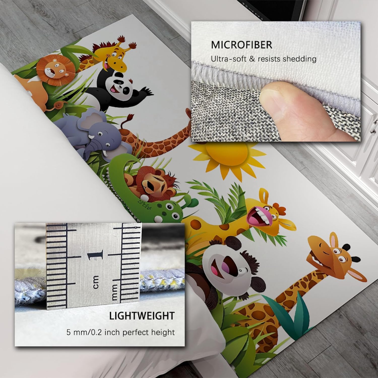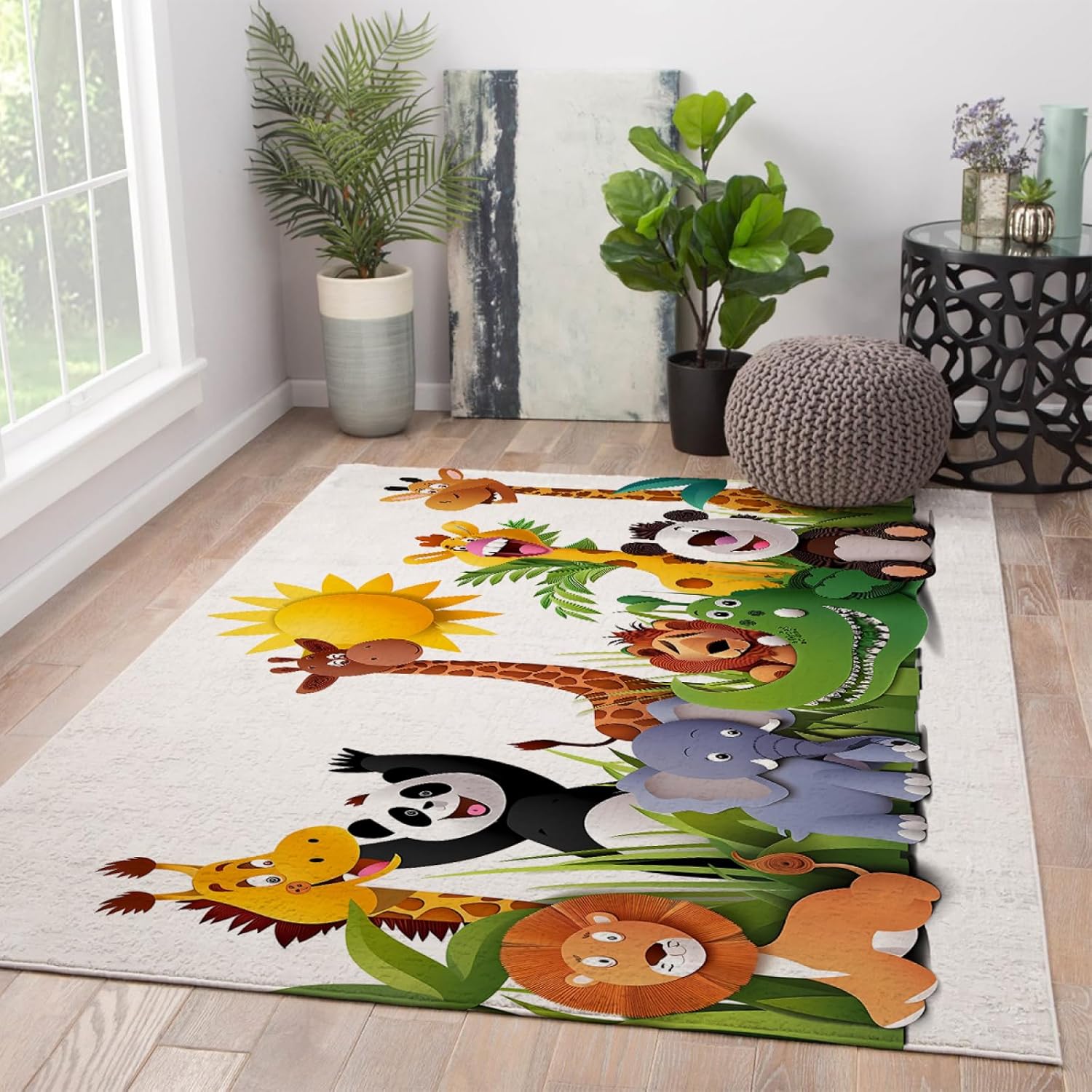 Kids Collection Rug Cute Animals Design Non Slip Wild Animals Ideal for High Traffic Areas for Boys & Girls in Playroom Nursery Decor 90x180cm