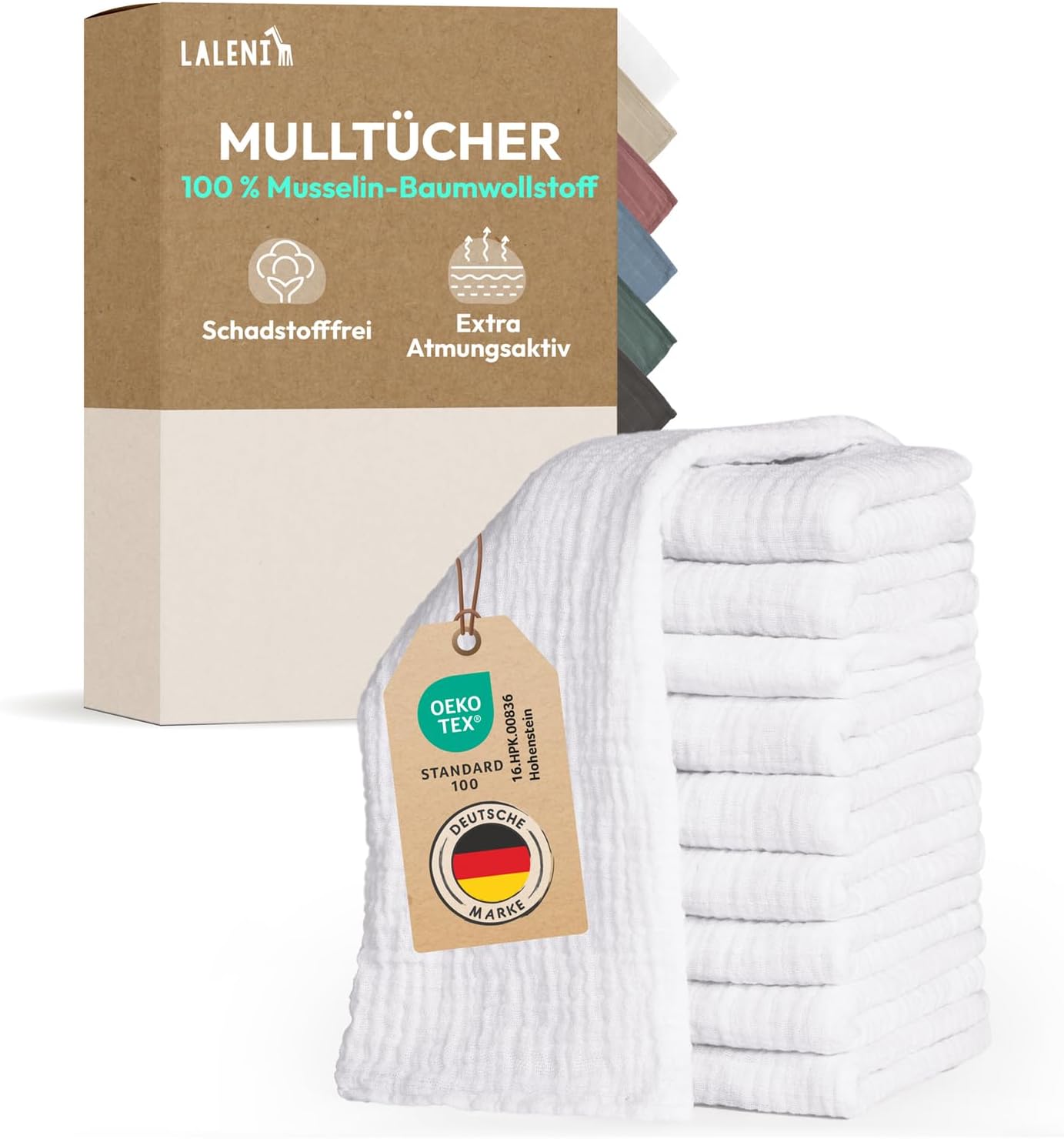 Laleni Baby Burp Cloths, Set of 10, Cotton 70×70 cm – Non-toxic, Highly Absorbent Muslin & Gauze Towel – Washable – White