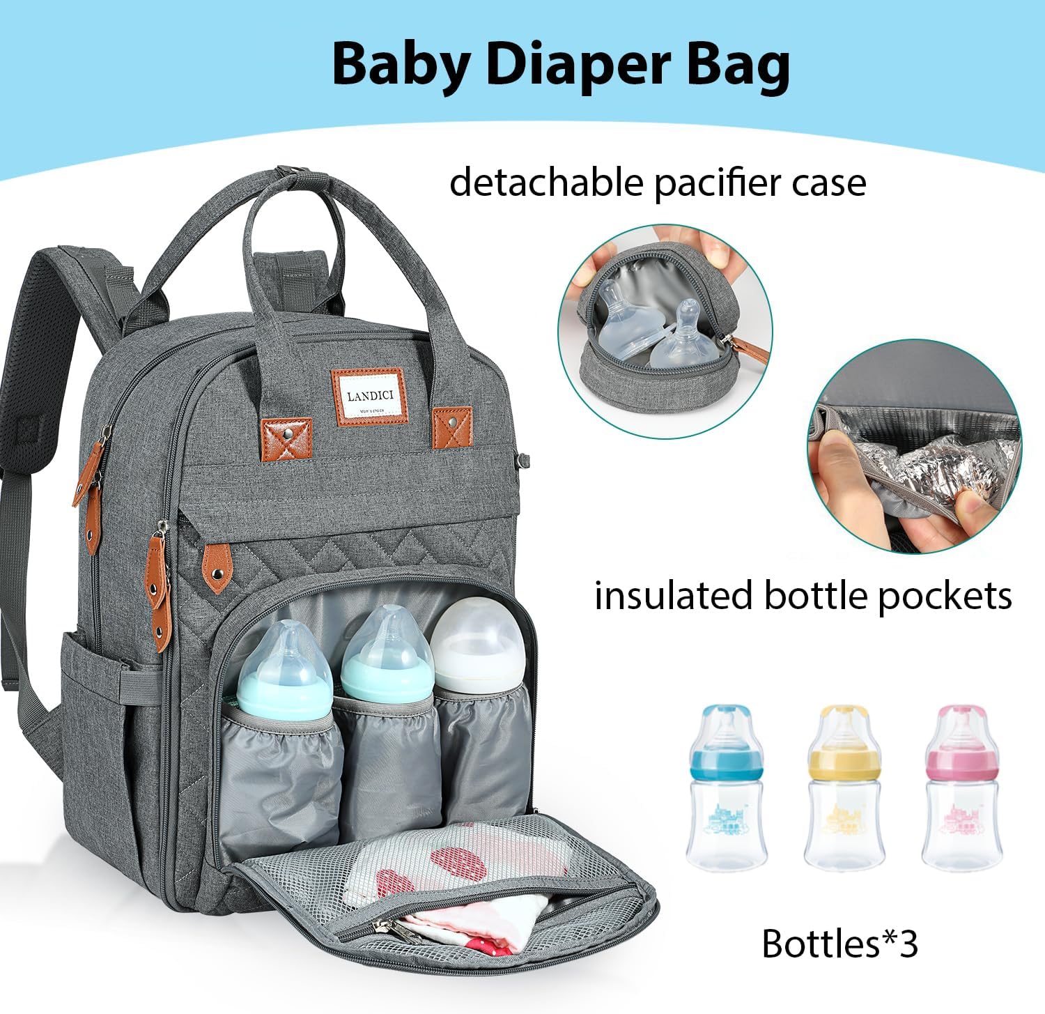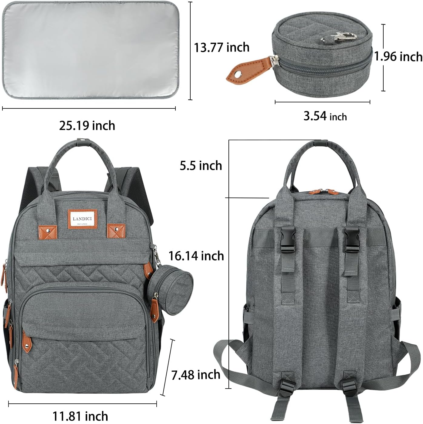 LANDICI Baby Changing Bag Backpack, Large Nappy Changing Backpack Diaper Bags with Changing Mat, Stroller Straps and Pacifier case, Multifunction doll Changing Bag for Mum Dad Boy Girls