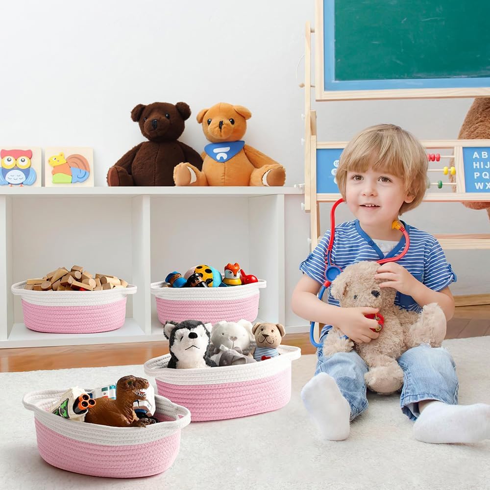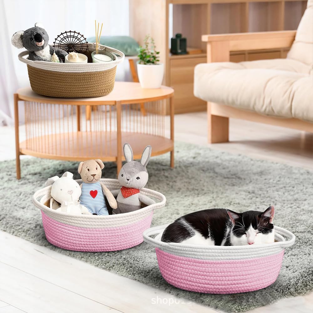 【Premium & Safe Material】- Made of soft, chemical-free natural cotton rope, perfect for baby baskets and pet toy boxes. Reinforced double-strand weaving ensures sturdiness and longevity.