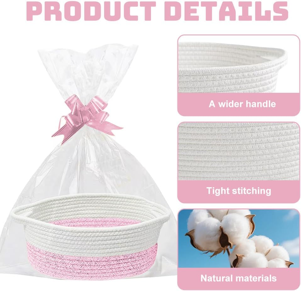 【Complete Gift Basket Set】- Includes a durable cotton rope basket, 1 gift bags, and ribbons—ready for birthdays, baby shower gifts, Easter, and housewarming. This versatile gift basket is ideal for various occasions.