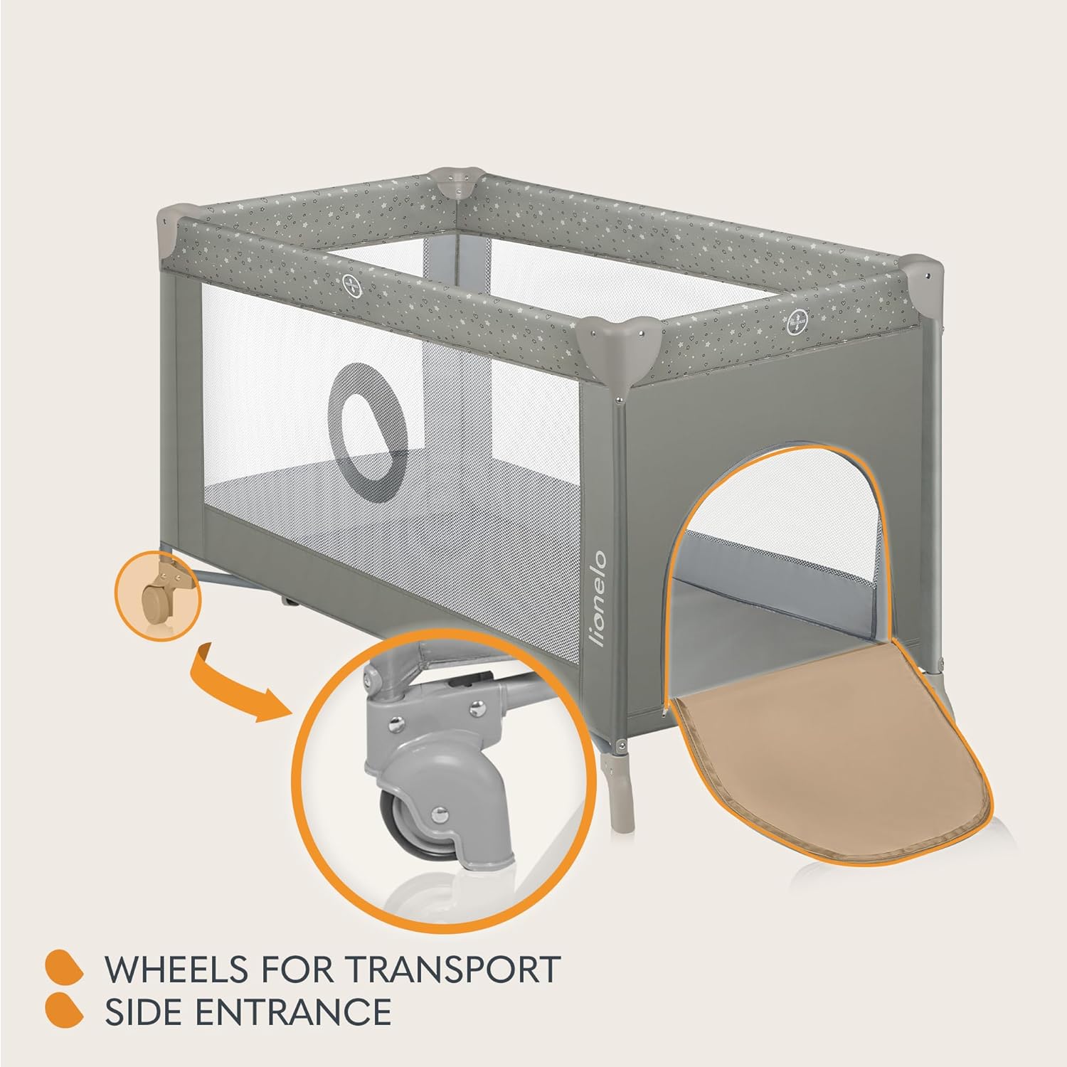 lionelo stefi 2 in 1 travel cot & baby zone portable baby bed for newborns and toddlers 0 36 kg with mattress, side entry, breathable mesh, lockguard safety, wheels with brakes, easy fold system, bagLionelo STEFI 2-in-1 Travel Cot & Baby zone Portable Baby Bed for Newborns and Toddlers 0-36 kg with Mattress, Side Entry, Breathable Mesh, LockGuard Safety, Wheels with Brakes, Easy-Fold System, Bag