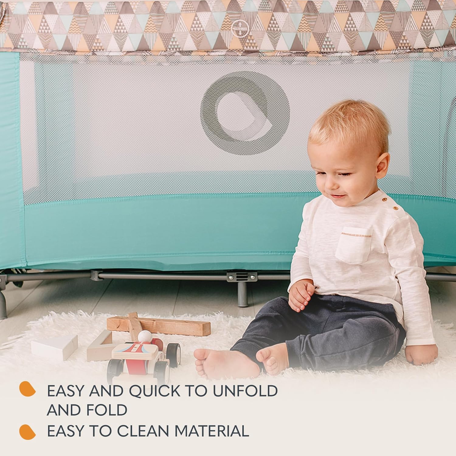 2-IN-1 TRAVEL COT & BABY ZONE – Versatile design that easily converts from a comfortable travel cot for babies to a spacious Baby zone for toddlers (0-36 months), providing long-lasting use as your child grows. 🍼