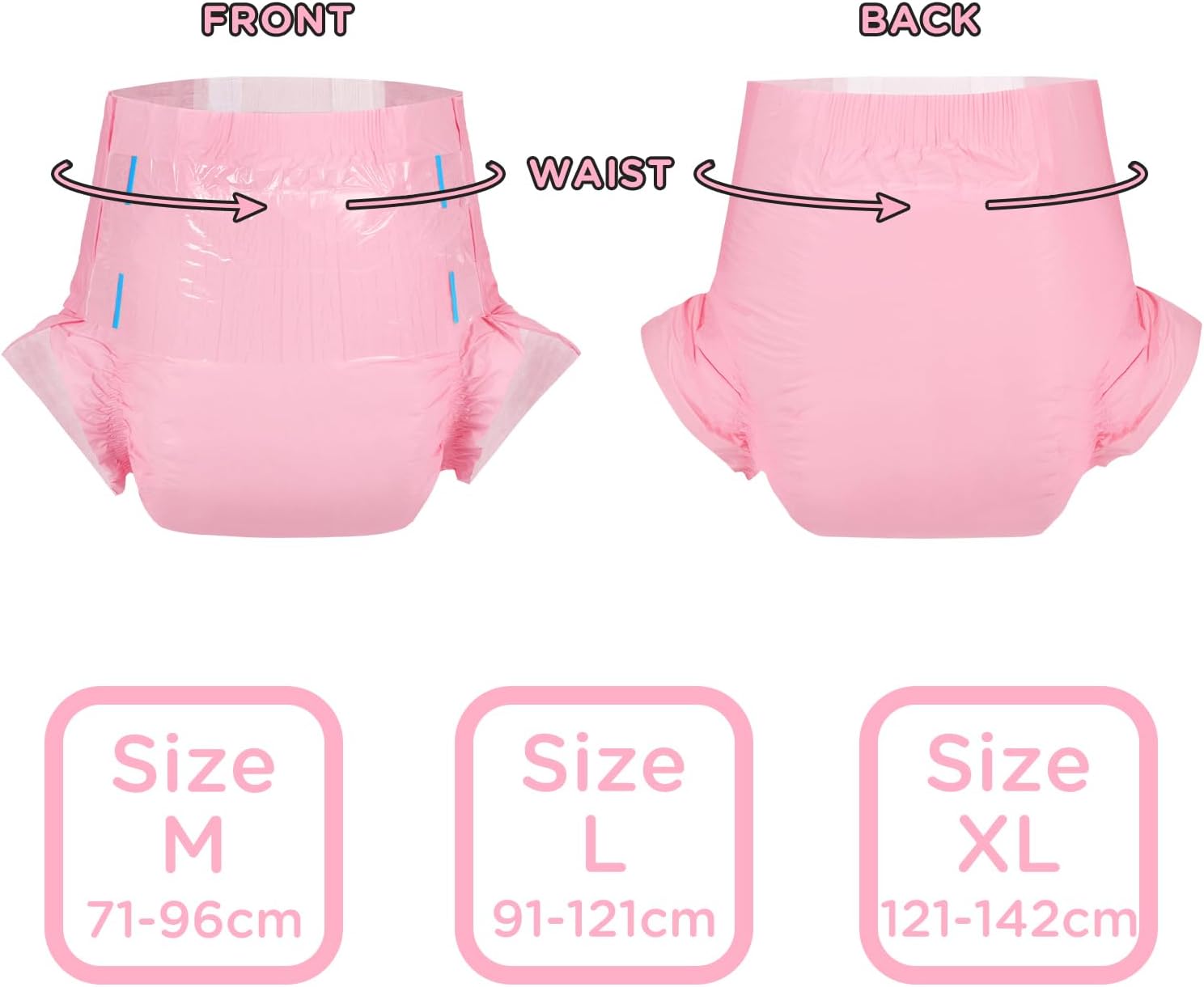 LittleForBig Adjustable Tapes Adult Diaper 10 Pieces – ABDry Ultra Absorbent Diapers Pink (Large 91-116 cm)