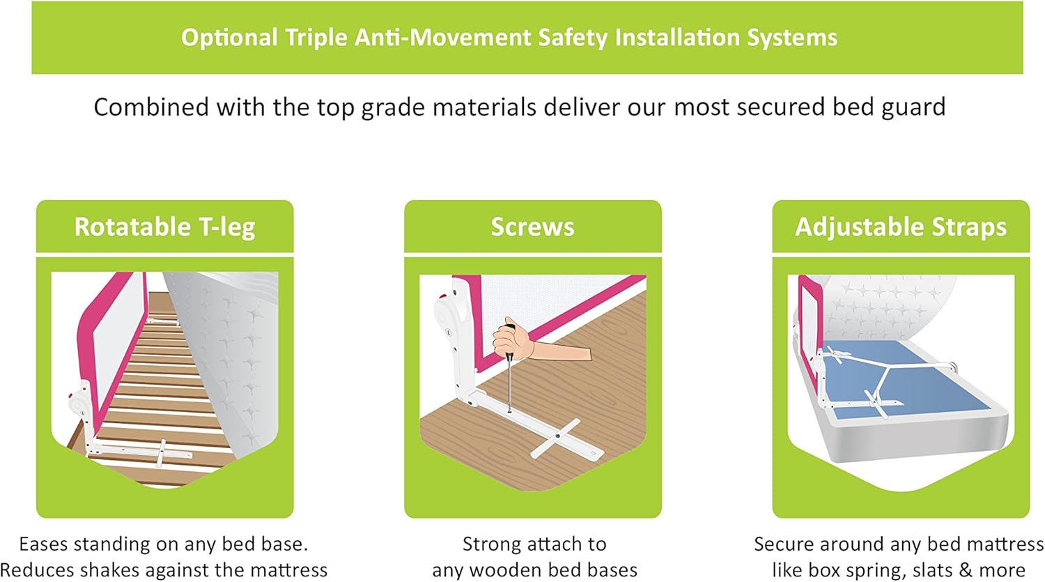 Littles Bed Guard Rail for Toddler, Child & Baby. Fits Single, Double Up to King Size Beds, Pink, 110 cm x 48.5 cm