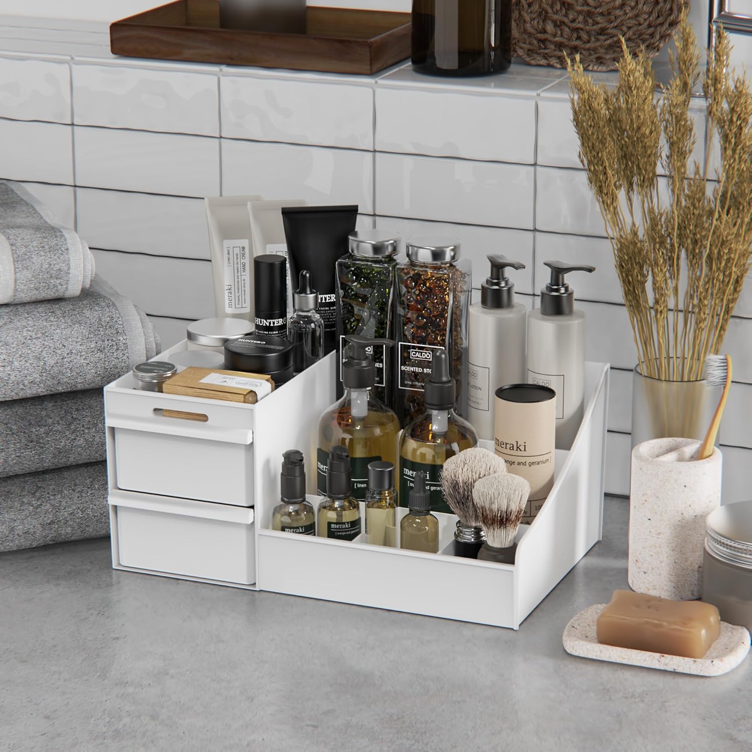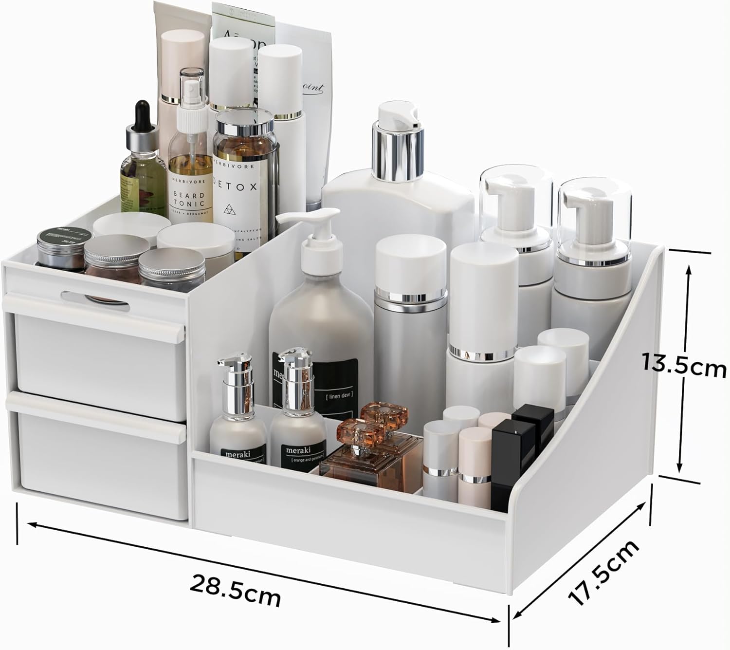 makeup organizer storage drawers, large capacity cosmetic organisers for lipsticks, jewelry, nail care, skincare organiser for vanity, ideal desk organizer for dresser and bathroom (white)Makeup Organizer Storage Drawers, Large Capacity Cosmetic Organisers for Lipsticks, Jewelry, Nail Care, Skincare Organiser for Vanity, Ideal Desk Organizer for Dresser and Bathroom (White)