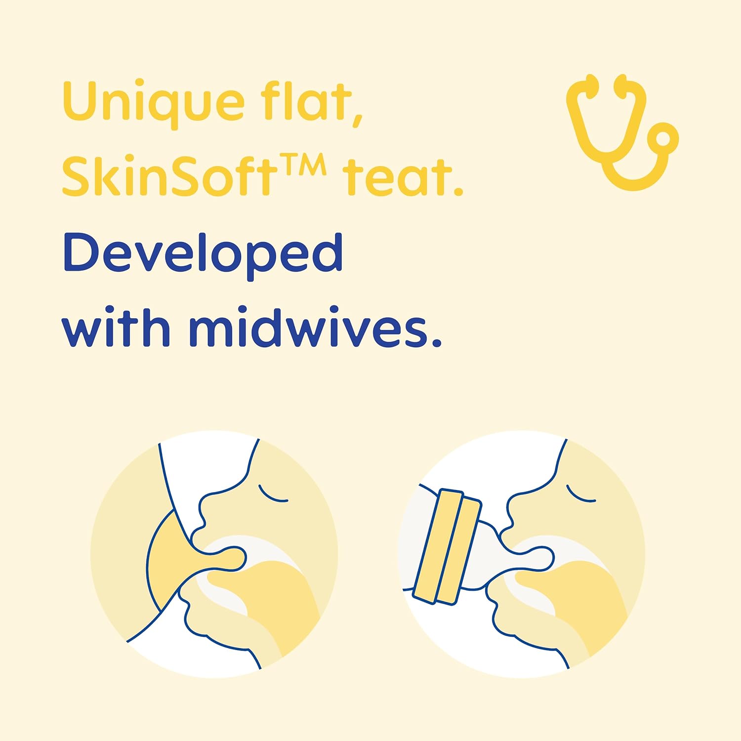 Natural fit: The flat, symmetrical shape is designed to sit perfectly in baby’s mouth, supporting healthy jaw development and easy latching