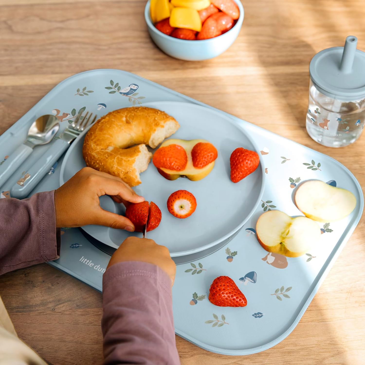 CHILDREN’S CUTLERY SET: This Mepal Mio cutlery set is just the thing for small copycats; the set consists of a knife, fork, and spoon