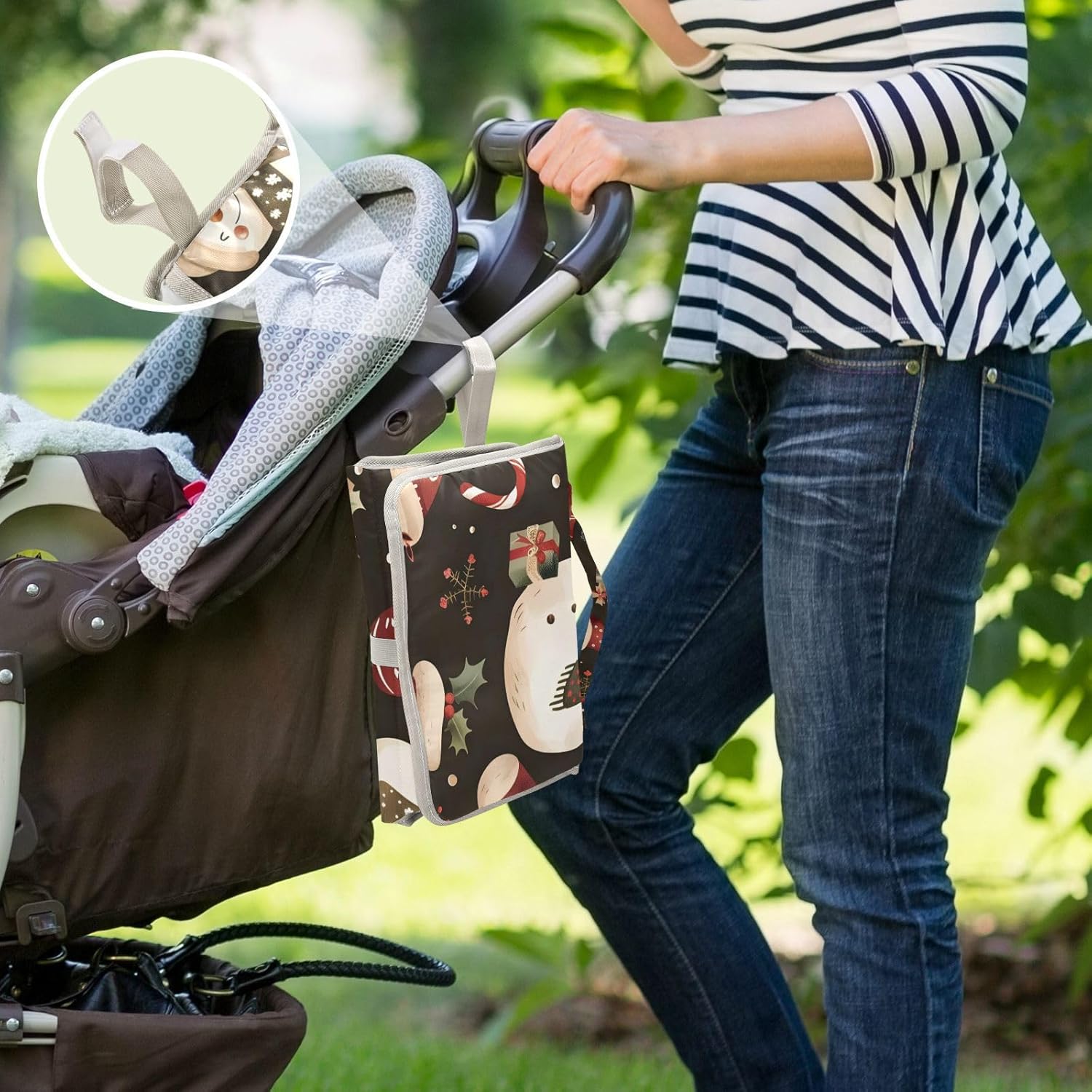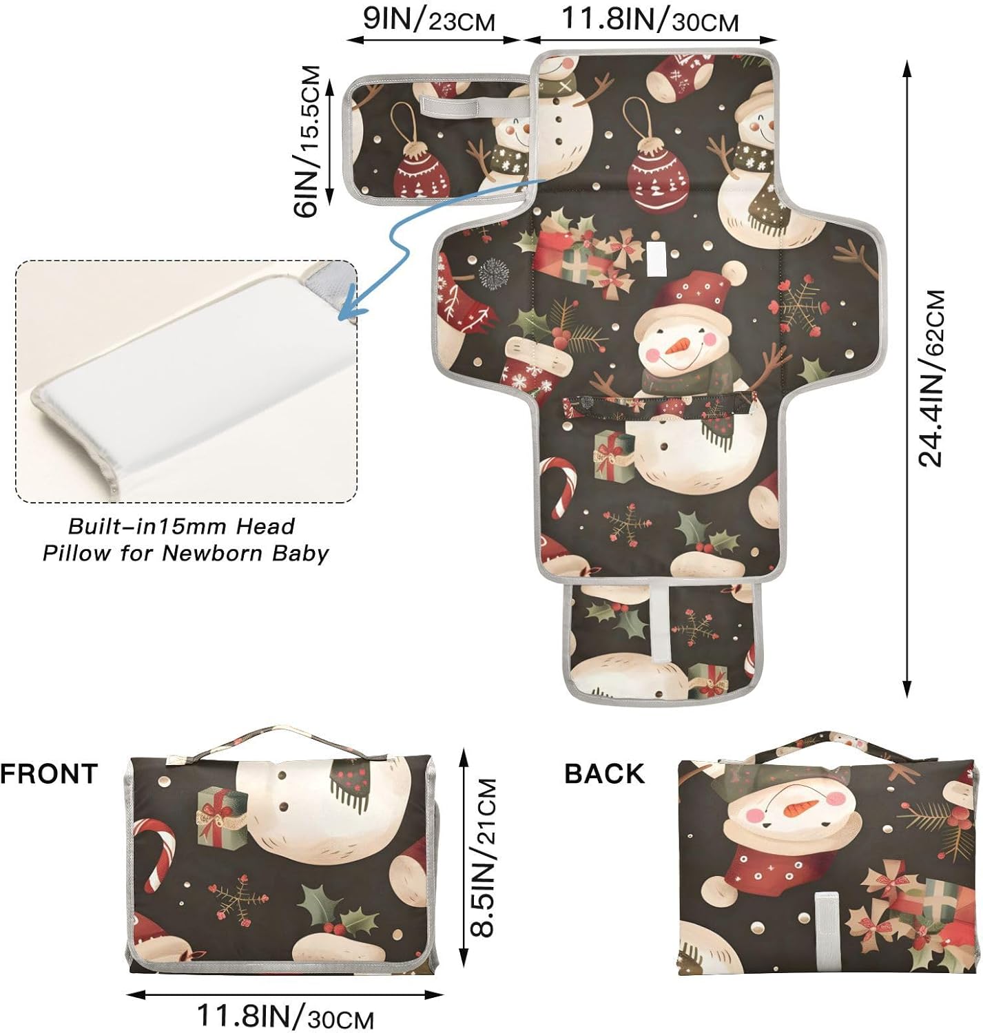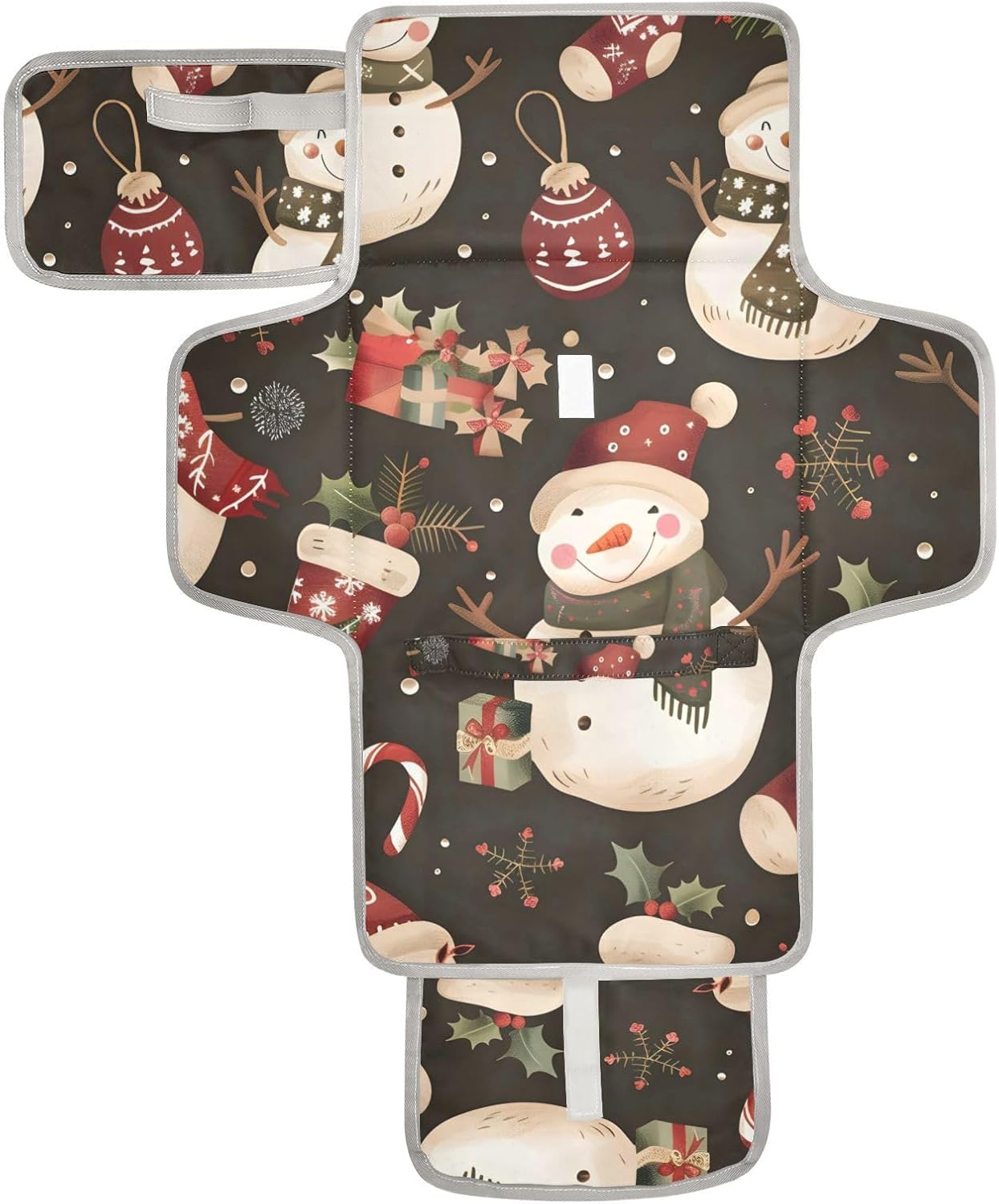 Merry Christmas Snowmen Black Reusable Waterproof with Tissue Pocket Portable Changing Mat for Baby Toddler Travel Station Kit cambiador de pa?ales para Bebes