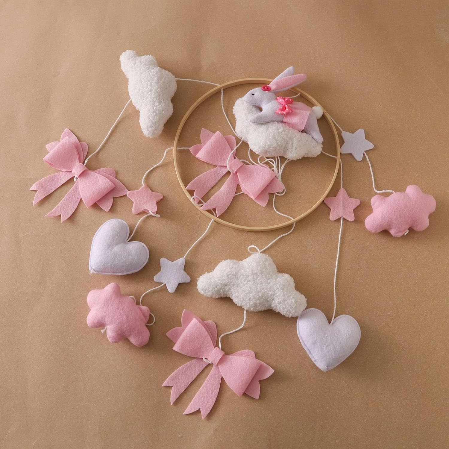 Mobile for Crib | Baby Nursery Mobile with Bunny and Bow – Boys Girls Rotating Sensory Toy Bohemian Ornament for Bedroom Bassinet Window Wall Living Room