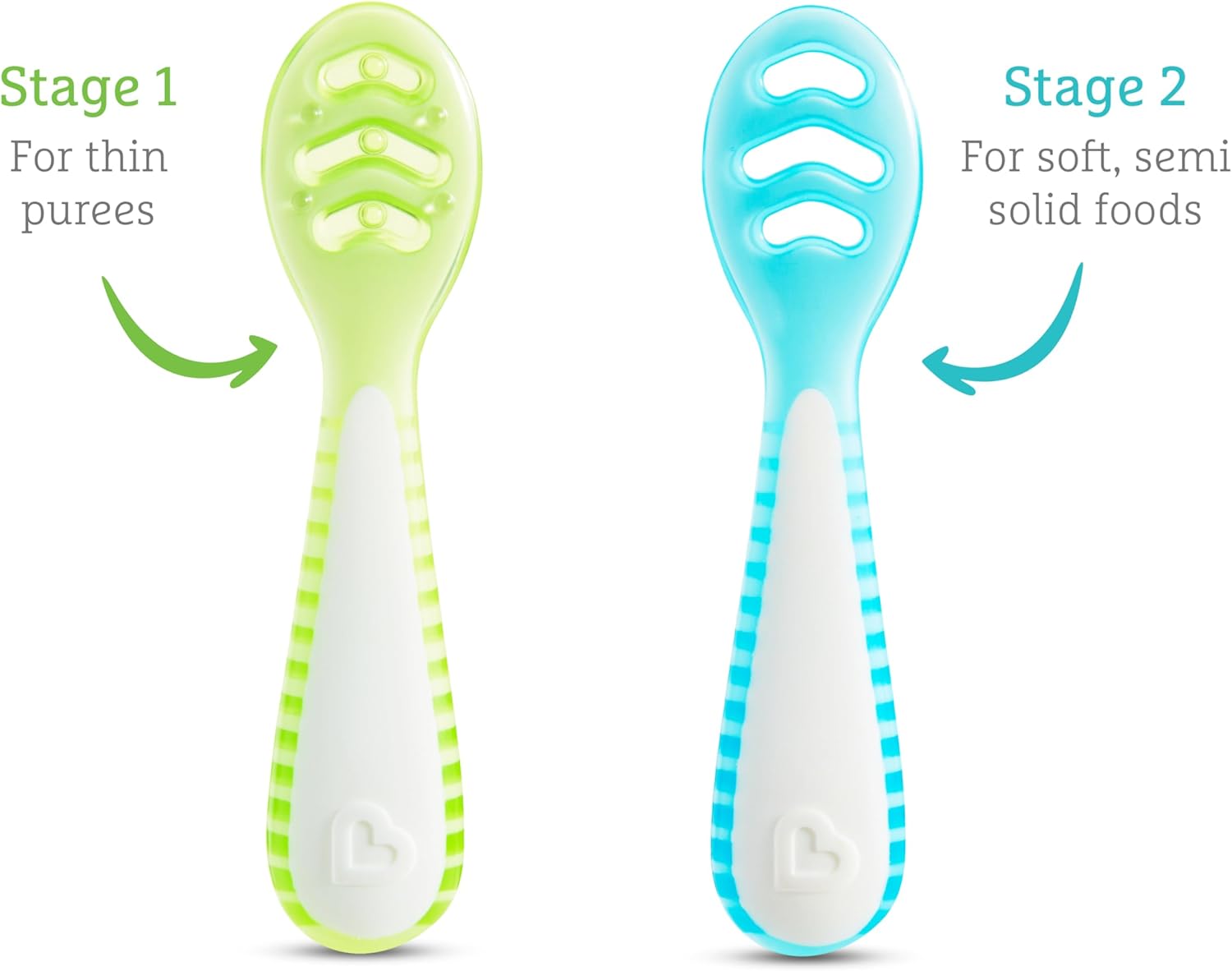 munchkin gentle dip multistage first spoons| weaning spoons for babies 4+ months | ideal for baby led weaning | ergonomic design | bpa free | blue & green | 3 packMunchkin Gentle Dip Multistage First Spoons| Weaning Spoons for Babies 4+ Months | Ideal for Baby-Led Weaning | Ergonomic Design | BPA-Free | Blue & Green | 3 Pack