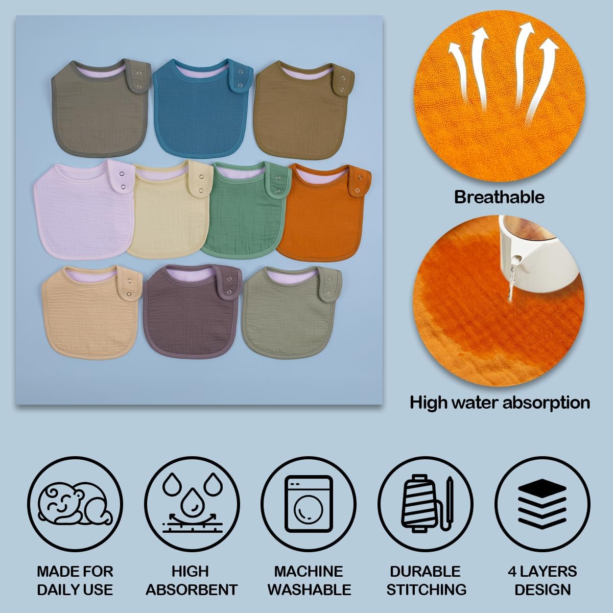 Muslin Baby Bibs 10 Pack Baby Bandana Drool Bibs Cotton for Boys and Girls, Soft Absorbent Set for Teething and Drooling