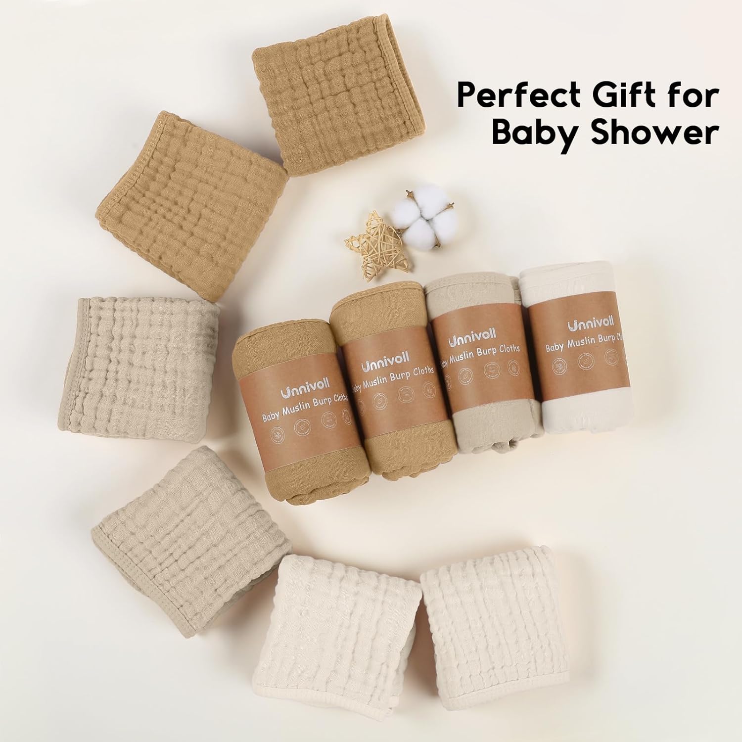 & Free ShippingSafety Comes First: Made from 100% premium quality cotton,Unnivoll muslin cloths for baby is certified to meet Consumer Product Safety Commission (CPSC) guidelines, eliminate all potential risks and provide a soft, breathable, cloud like comfort for your little one. The natural muslin is also suitable for all skin types including sensitive and delicate skin, perfectly use on the face, hand and body.