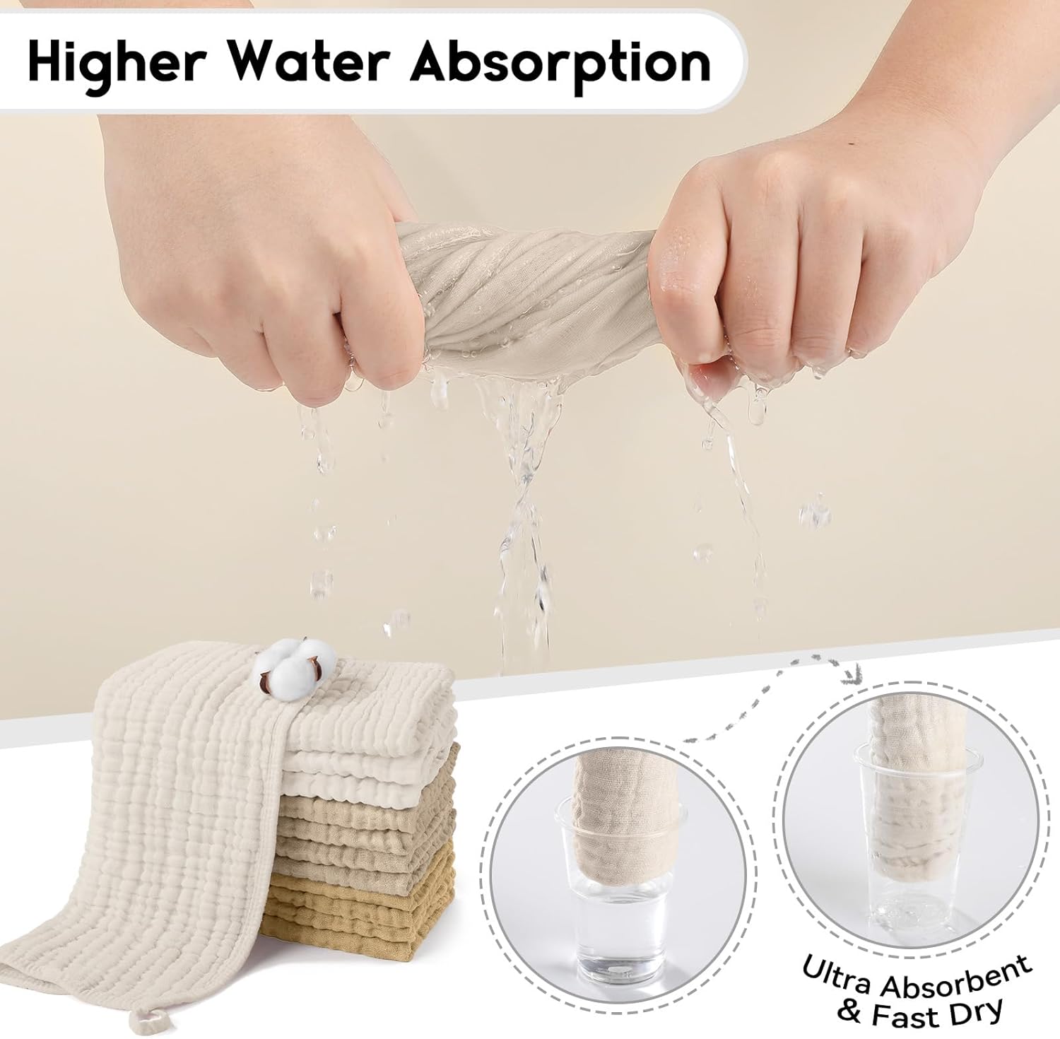 Care Without Hassle: Pre-washing technology effectively reduces the shrinkage and reinforced edges prevent unraveling, which ensures the baby muslin burp cloths can be machine washed and dried at low temperatures, it will still in shape and even get softer after washing several times. We care not only for babies, but also for busy parents!