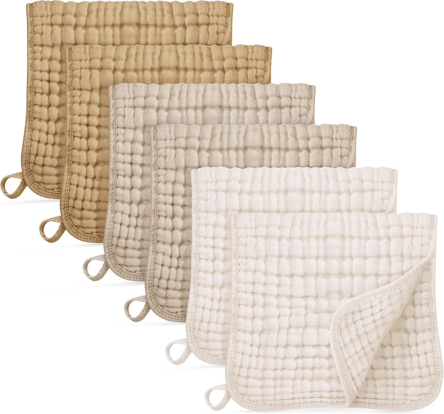 Muslin Cloths for Baby 100% Cotton Muslin Squares Burp Cloths Baby Essentials for Newborn Boys Girls Large 50x25CM Extra Soft and Absorbent 6 Pack – Gradient khaki