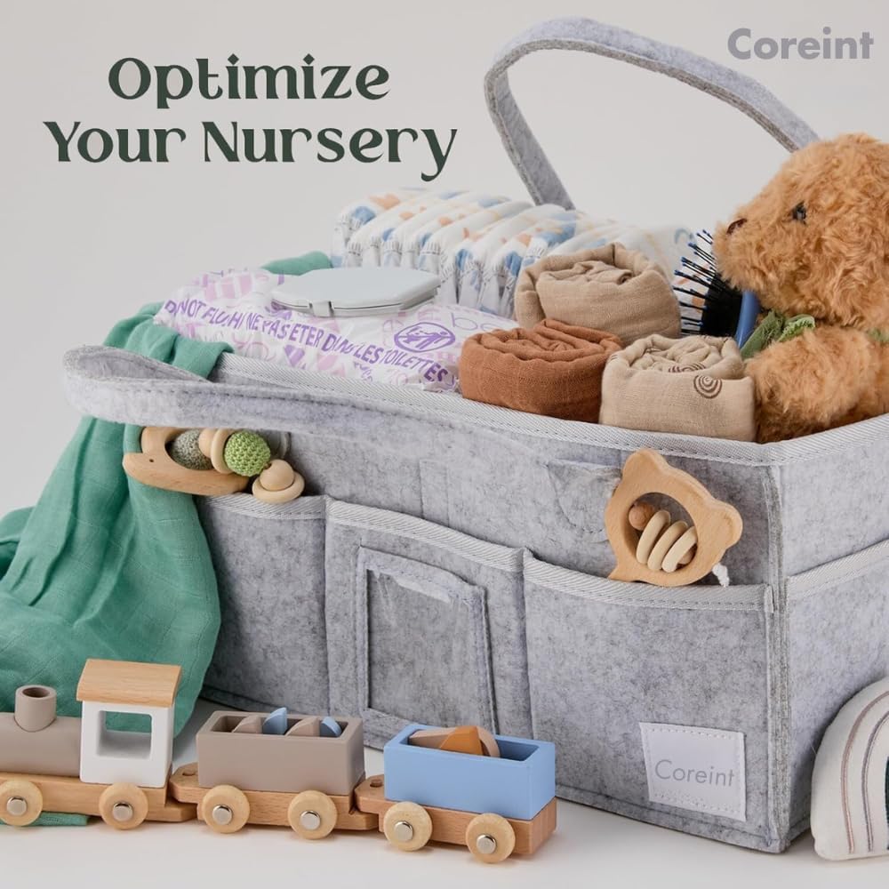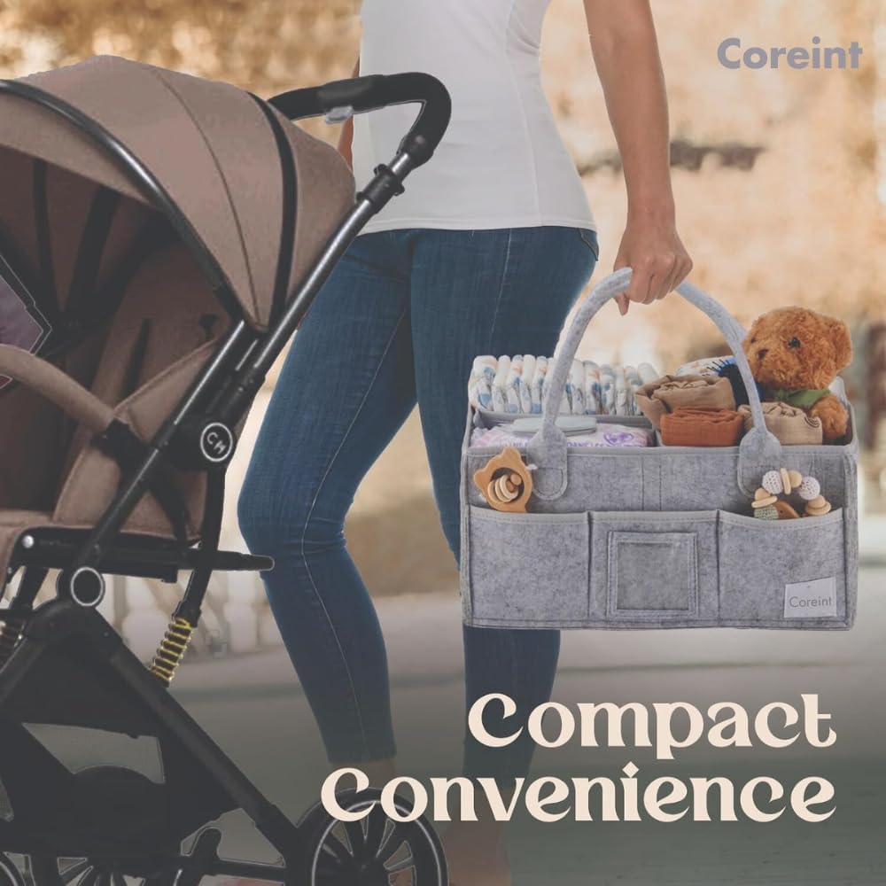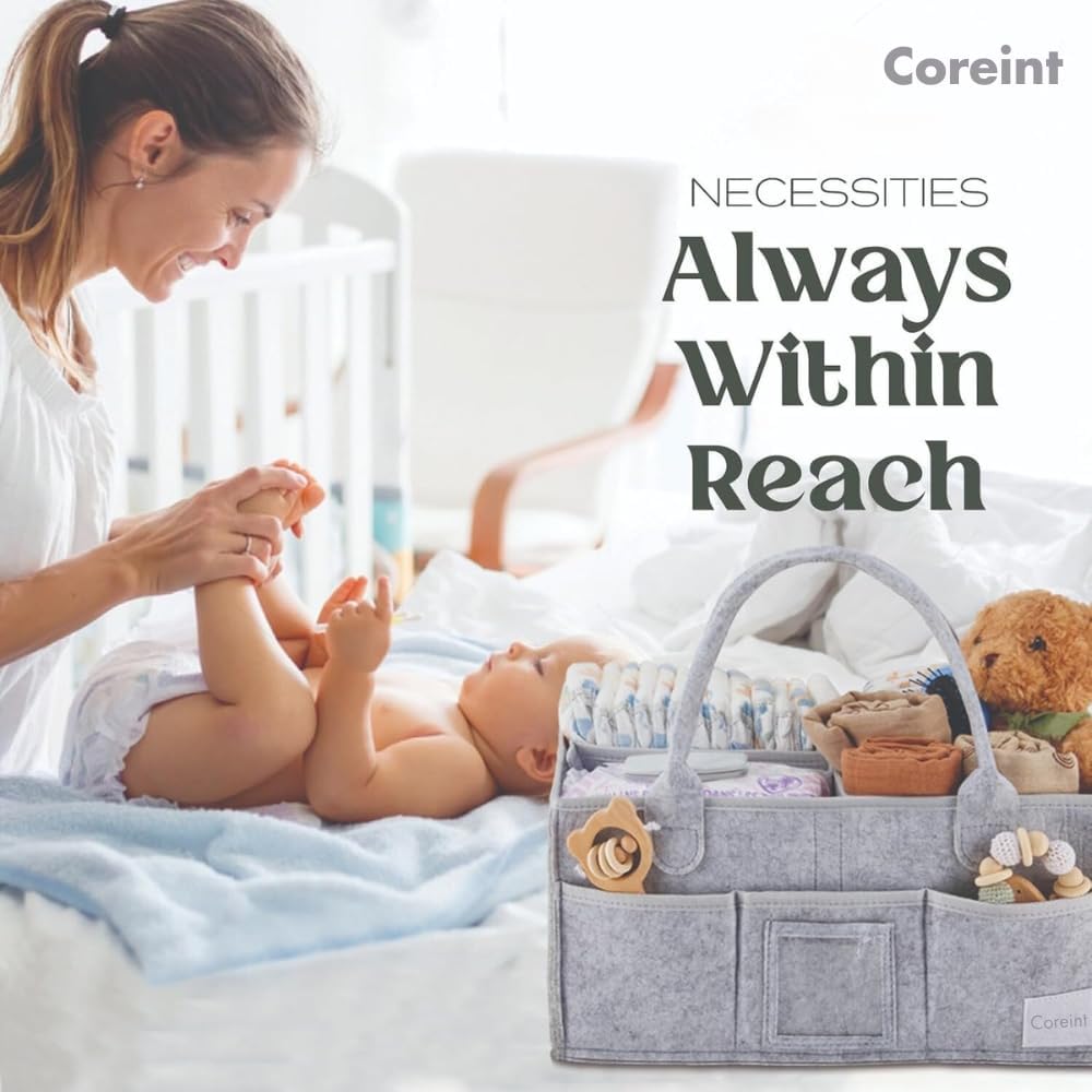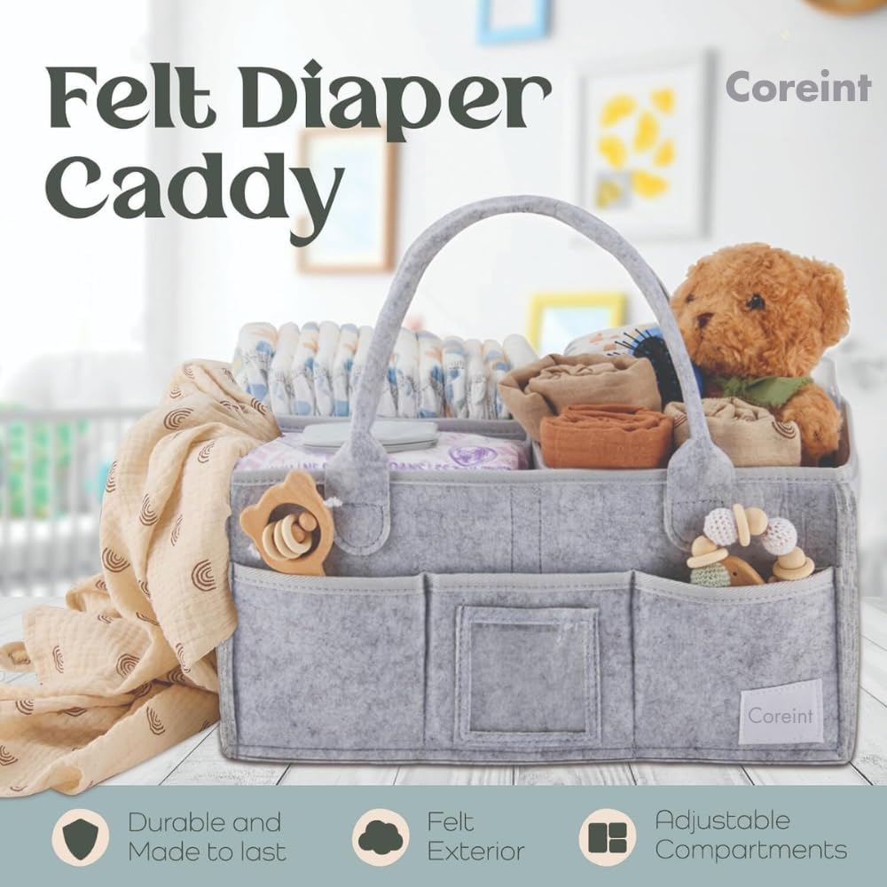 Baby Essential Organize with Ease – The Baby Diaper Caddy Organizer is the perfect solution for keeping all your baby essentials in one convenient place. It provides ample storage for diapers, baby wipes, baby bottles, creams, toys, swaddles, spare clothes, baby burp cloth and more baby stuff, Keeping newborn essentials all in one place, and making diaper changes a breeze
