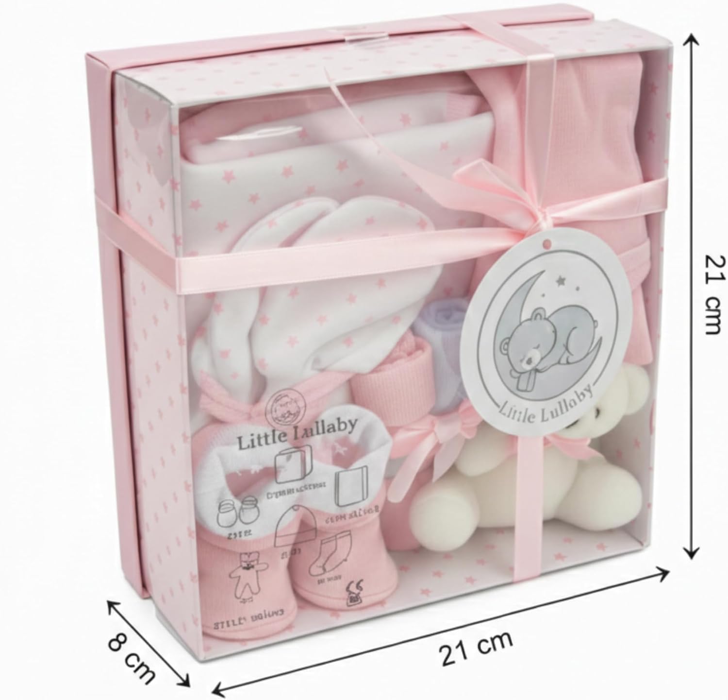 newborn 7 piece luxury boxed baby gift set (0 3 months) with bundle bear "welcome baby" card, baby showers gift & newborn baby gift, available in blue, pink & white (pink)Newborn 7 Piece Luxury Boxed Baby Gift Set (0-3 Months) with Bundle Bear “Welcome Baby” Card, Baby Showers Gift & Newborn Baby Gift, Available in Blue, Pink & White (Pink)
