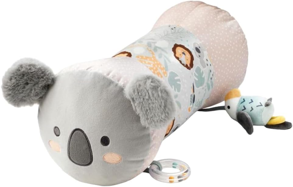 EARLY DEVELOPMENT – Watch as your little explore takes off on their tummy time adventure. This plush pillow is perfect for strengthening your little one’s muscles whilst keeping them entertained thanks to the crinkling koala ears, rattling parrot and teething ring.