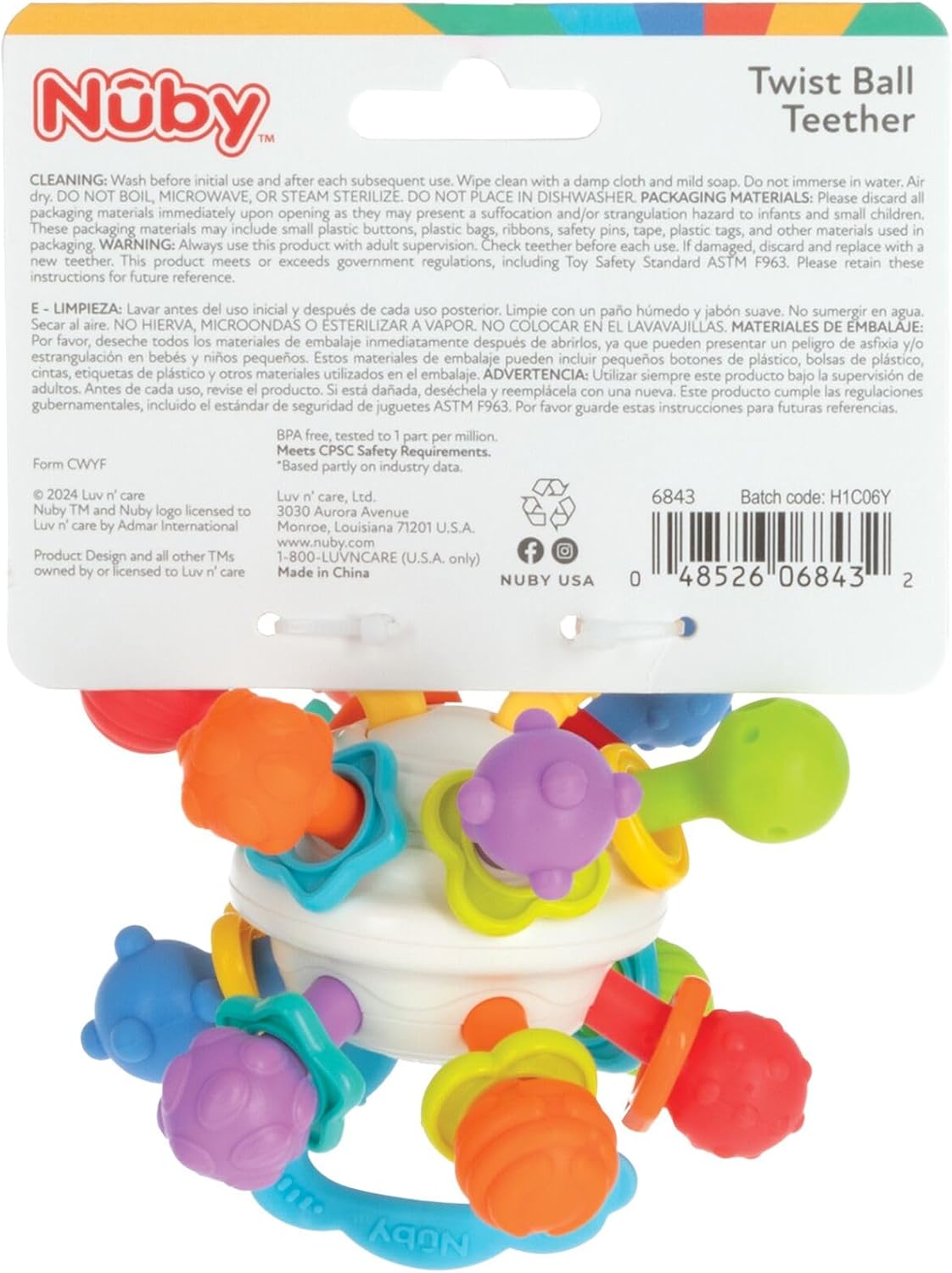 & Free ShippingBABY TEETHING TOYS 6 MONTHS AND UP – The Nuby Twist Ball Teether is designed to relieve teething discomfort and accompany the appearance of baby’s first teeth.