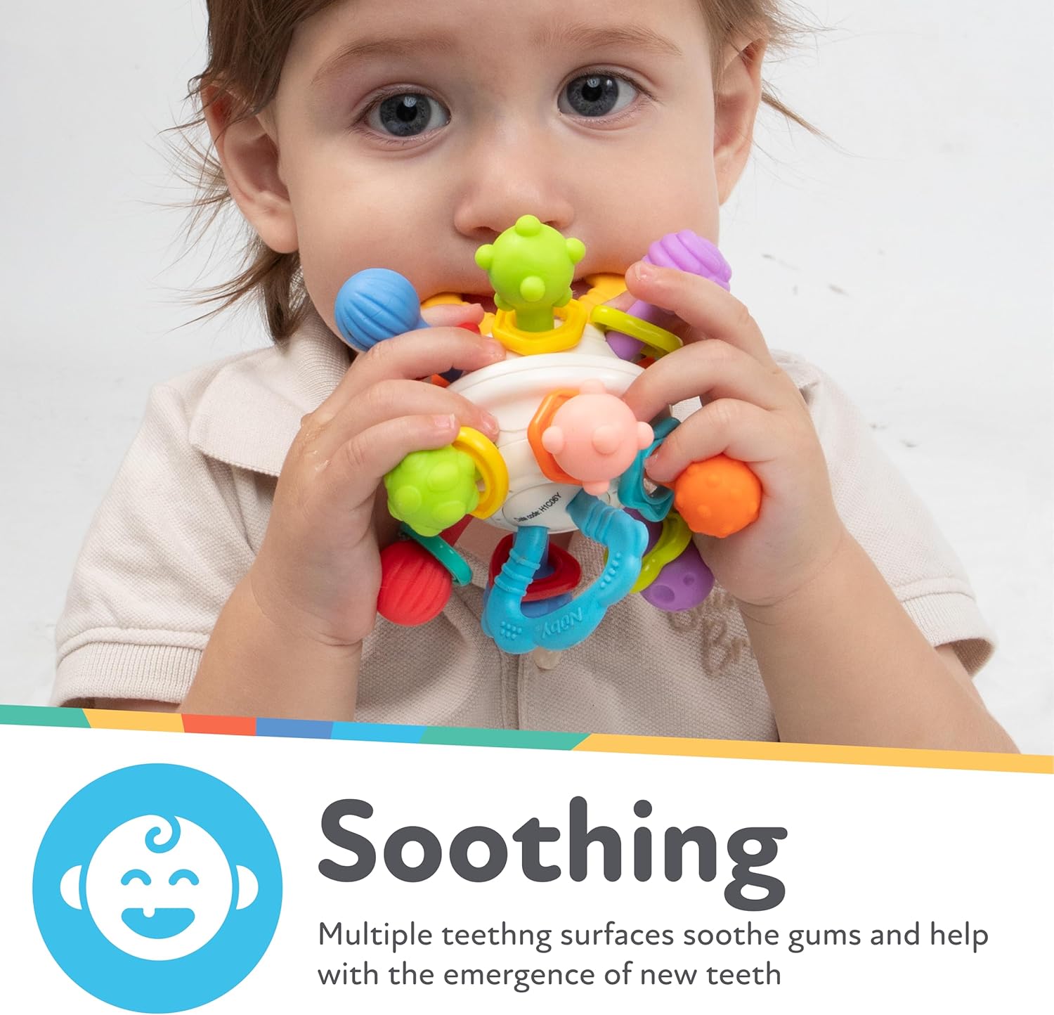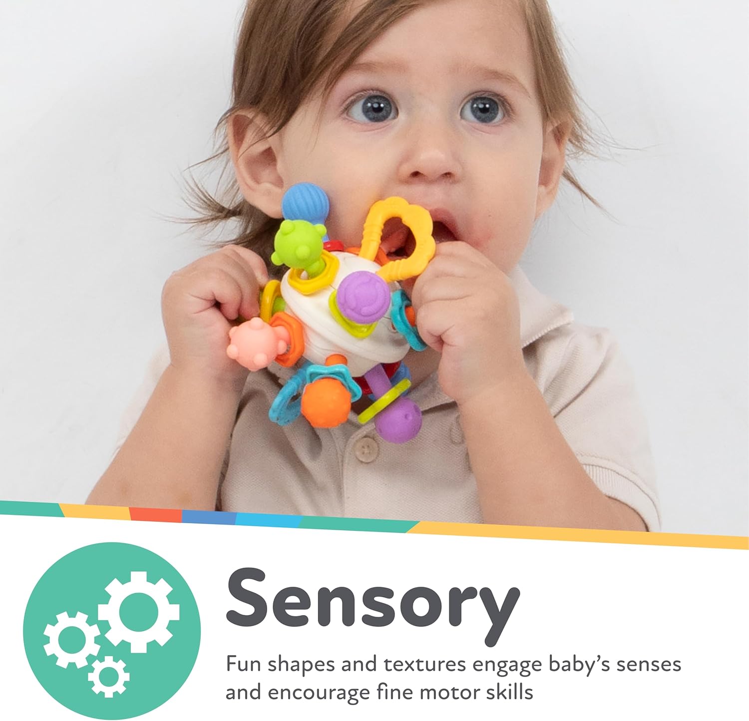 BABY TEETHING TOYS 6 MONTHS AND UP – The Nuby Twist Ball Teether is designed to relieve teething discomfort and accompany the appearance of baby’s first teeth.