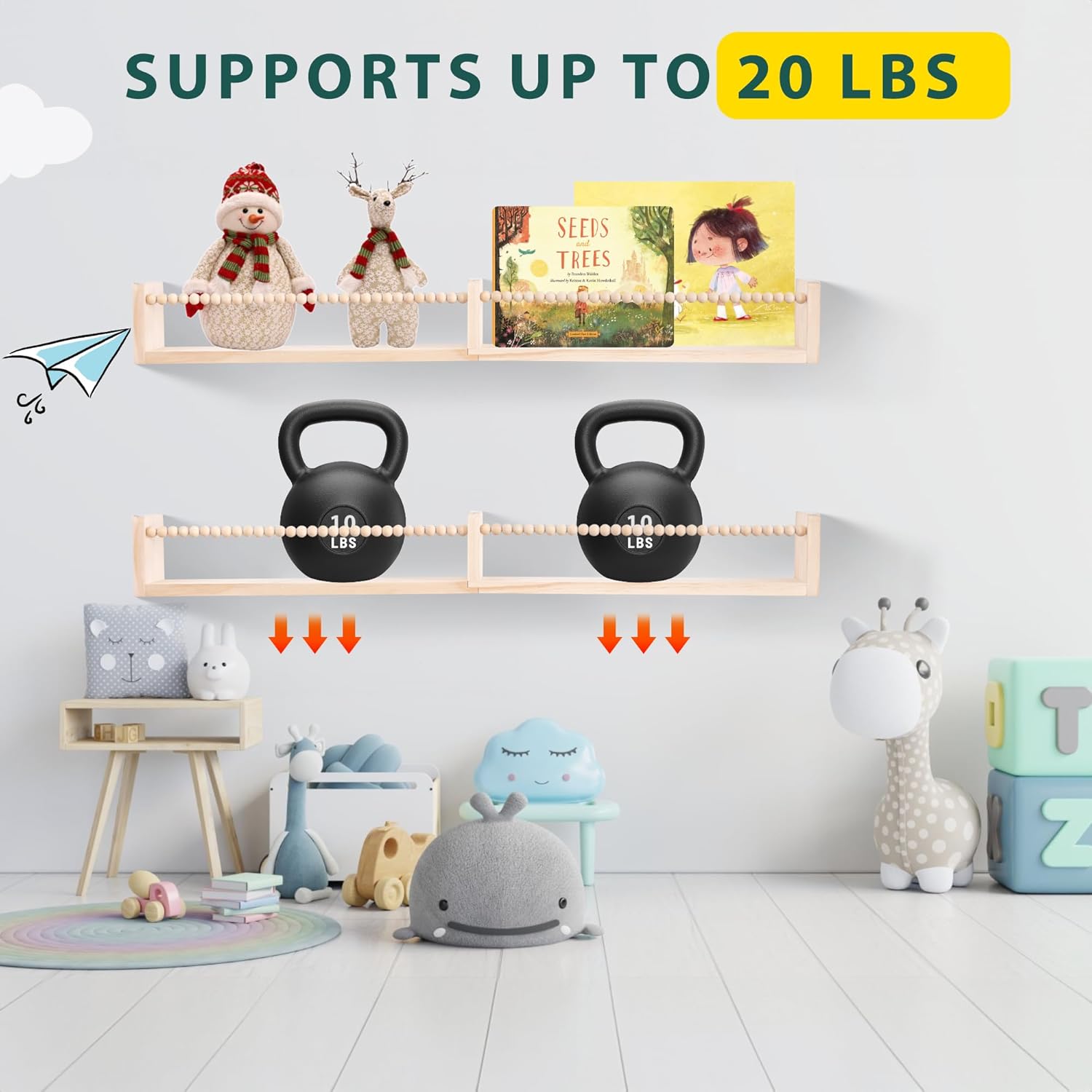 & Free ShippingMulti-purpose:The nursery book shelves designed specifically for children’s rooms,store kid’s picture books,various toys,stuffed animals,trinkets,small plants etc.itcan also be mounted in any room:livingroom,bathroom,kitchen or bedroom