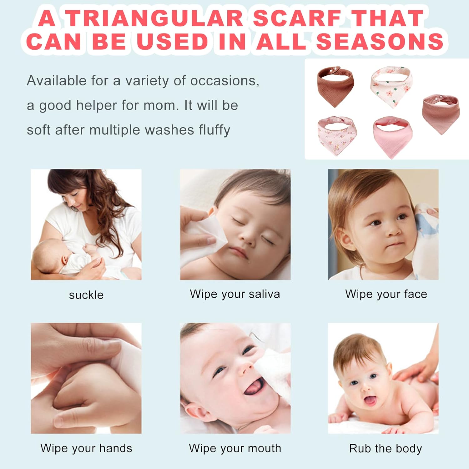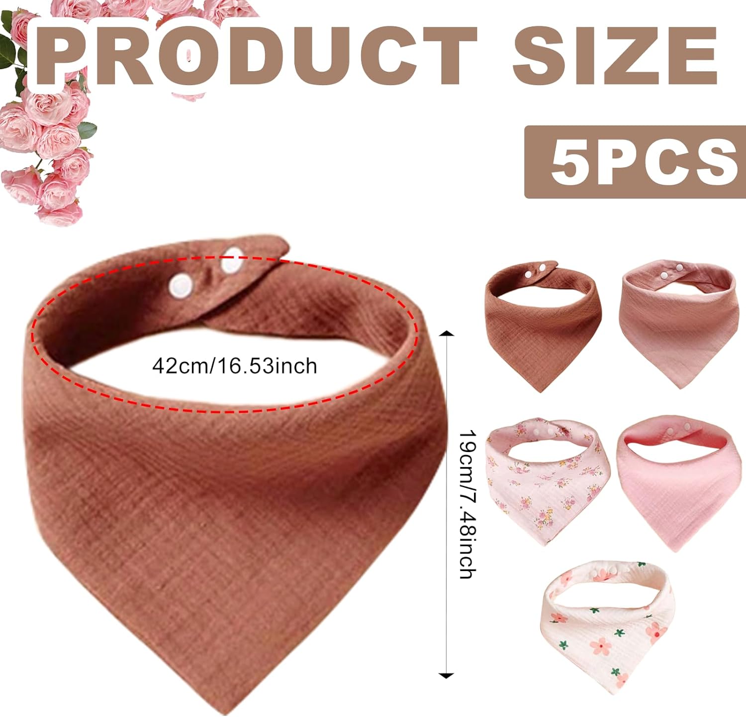pack of 5 baby bandanas, cotton triangular bibs, super soft, absorbent and adjustable for boys and girlsPack of 5 Baby Bandanas, Cotton Triangular Bibs, Super Soft, Absorbent and Adjustable for Boys and Girls