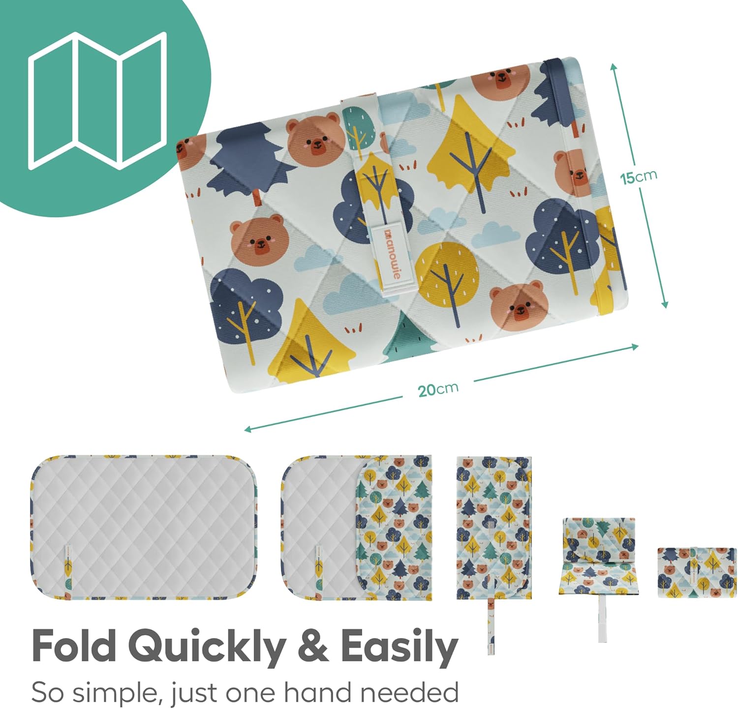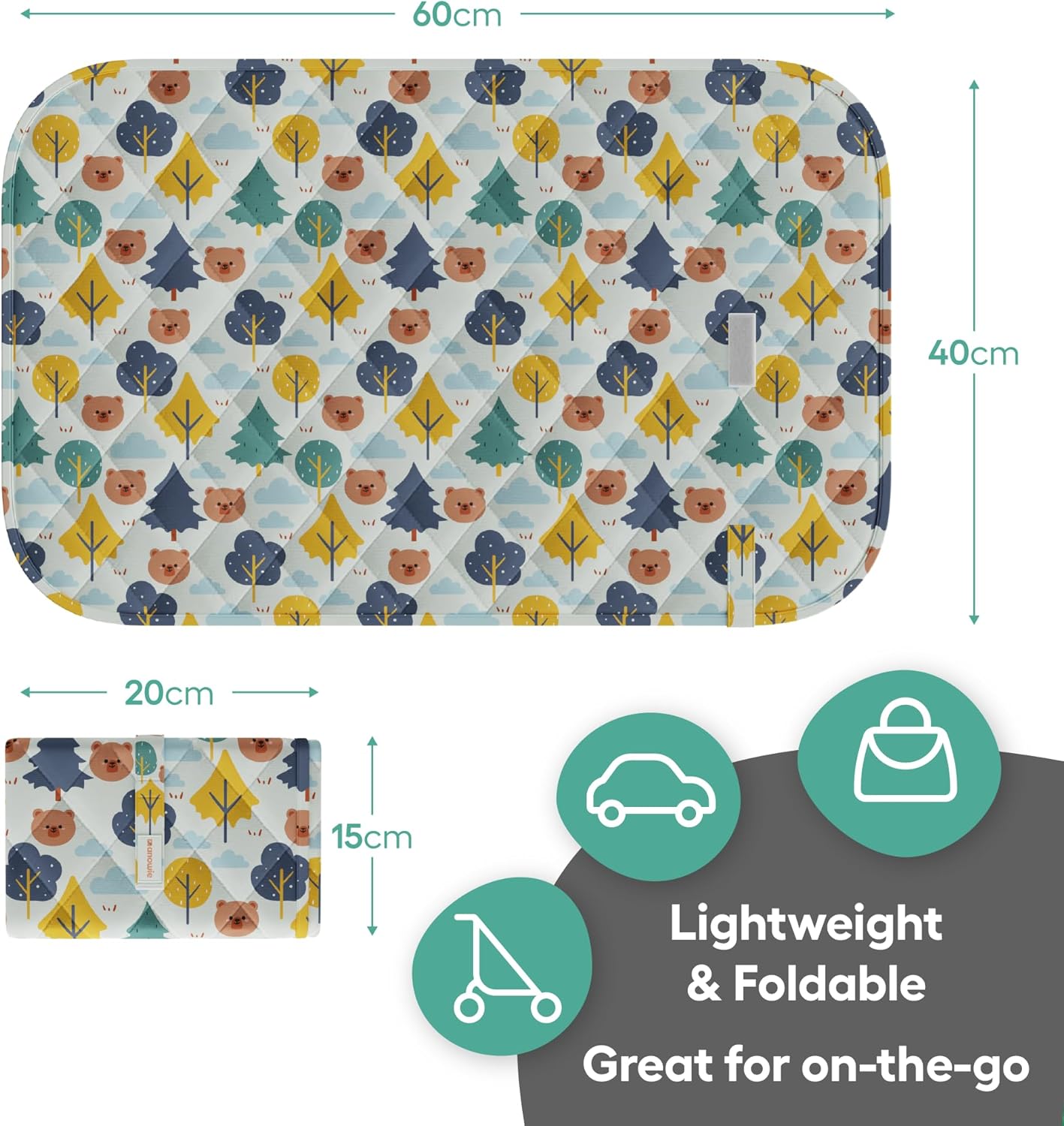 Portable Baby Changing Mat – Foldable Waterproof Travel Mat for Newborns | Compact Changing Bag | Pram & Nappy Bag | Woodland Animals