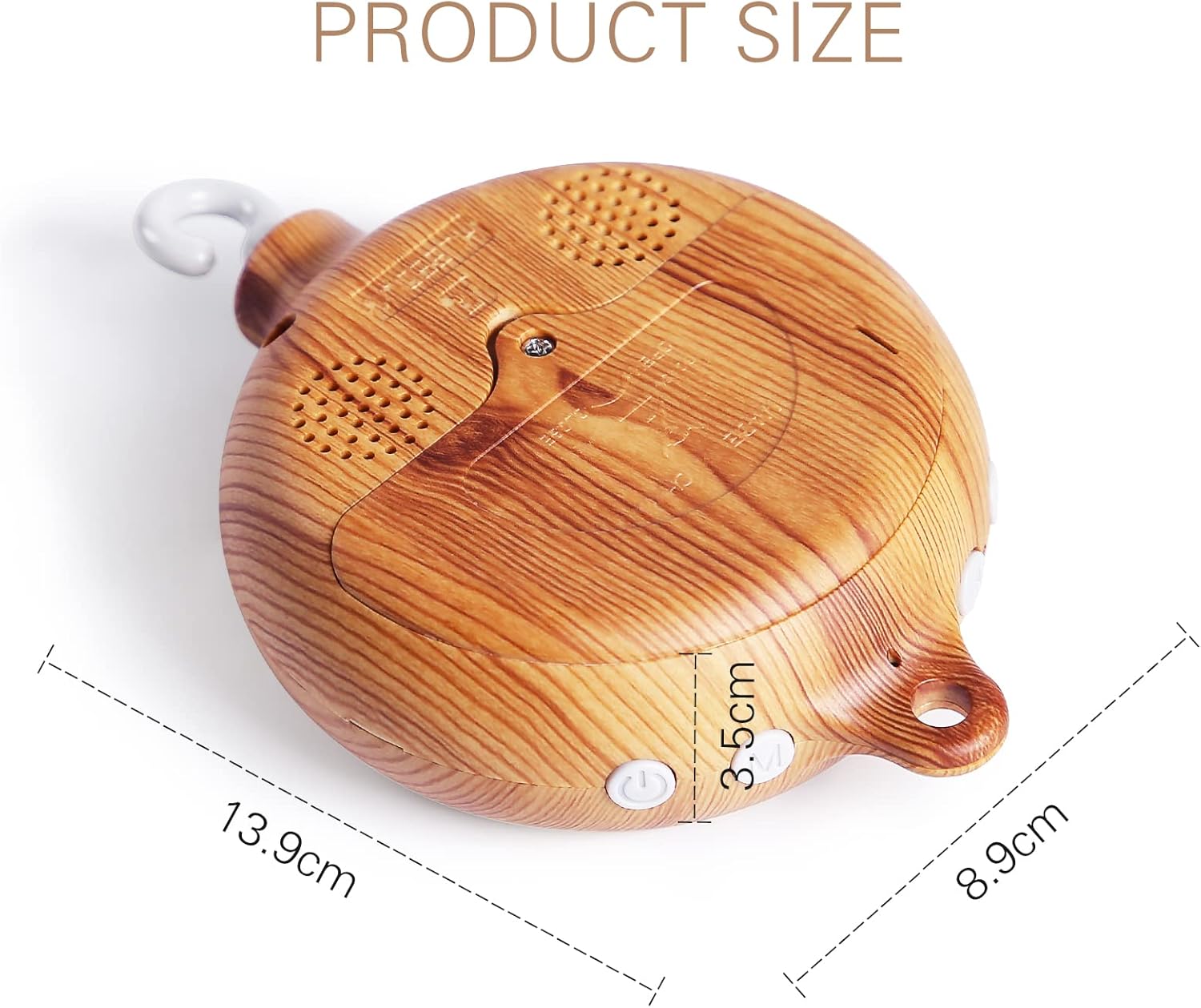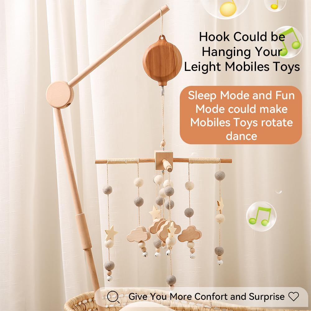 👶❤ 【Comfort, Sleep, Fun Functions】: The wooden look with water pressure Tech Plastic Baby Music Box,Helps calm the crying baby,improves the perception of the music babies. Improve hearing ability babies and parents child interaction! ❤ The music box for cots makes a bright sound during your baby’s sleep, which stimulates the baby’s hearing and touch to fall asleep more comfortably. ❤ M Button Help you to choose in different situation, Fun, Comfort, Sleep Mode~