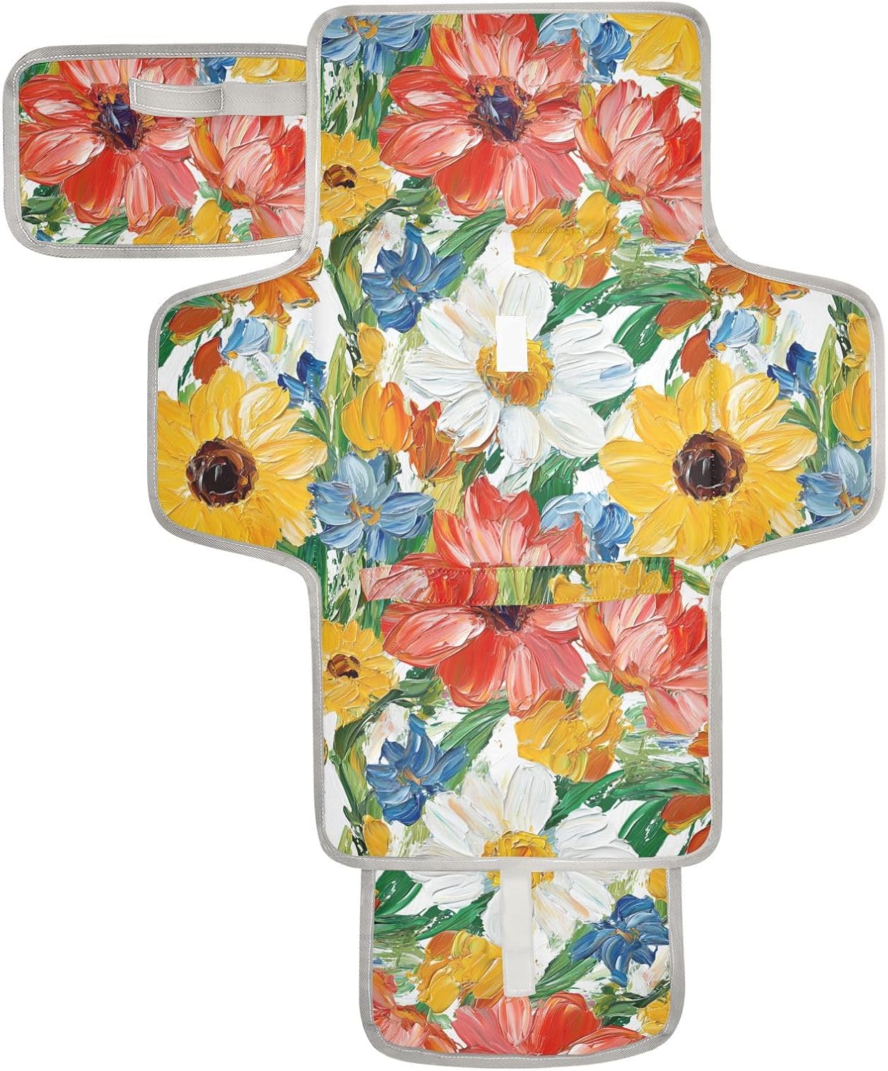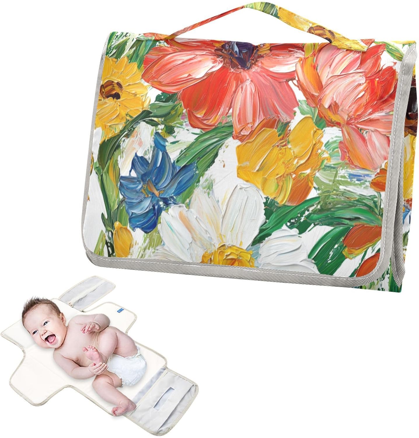 Reusable Baby Changing Mat Oil Painting Colorful Flowers with Pocket Changing Mat Travel Station Kit