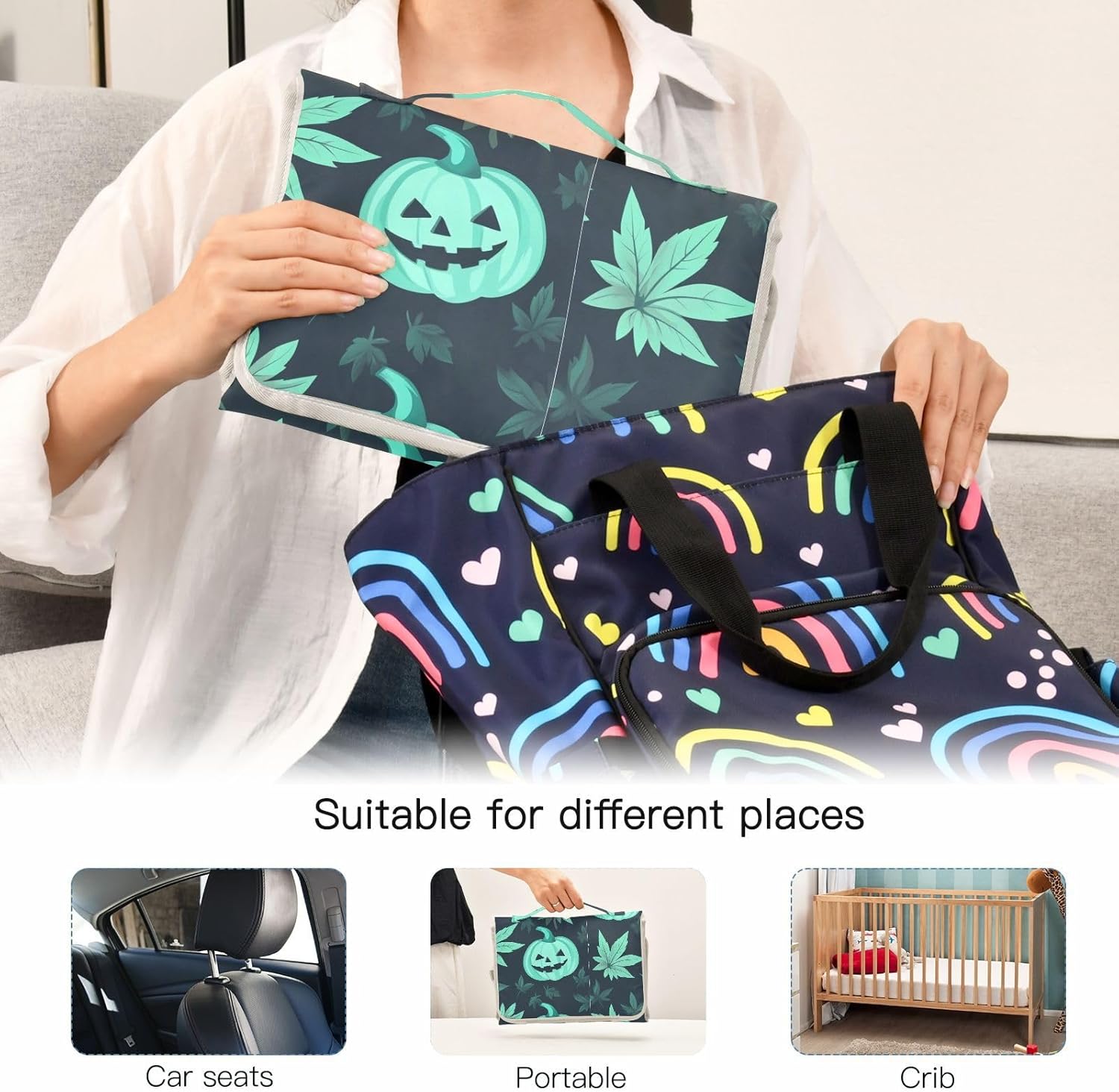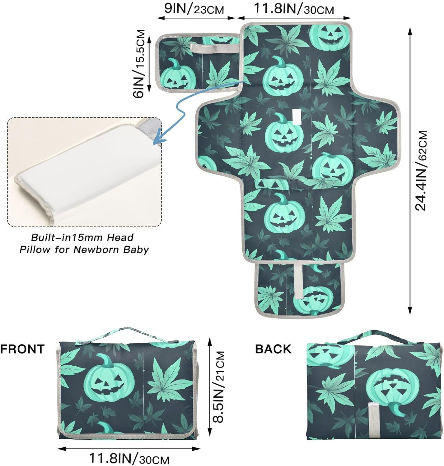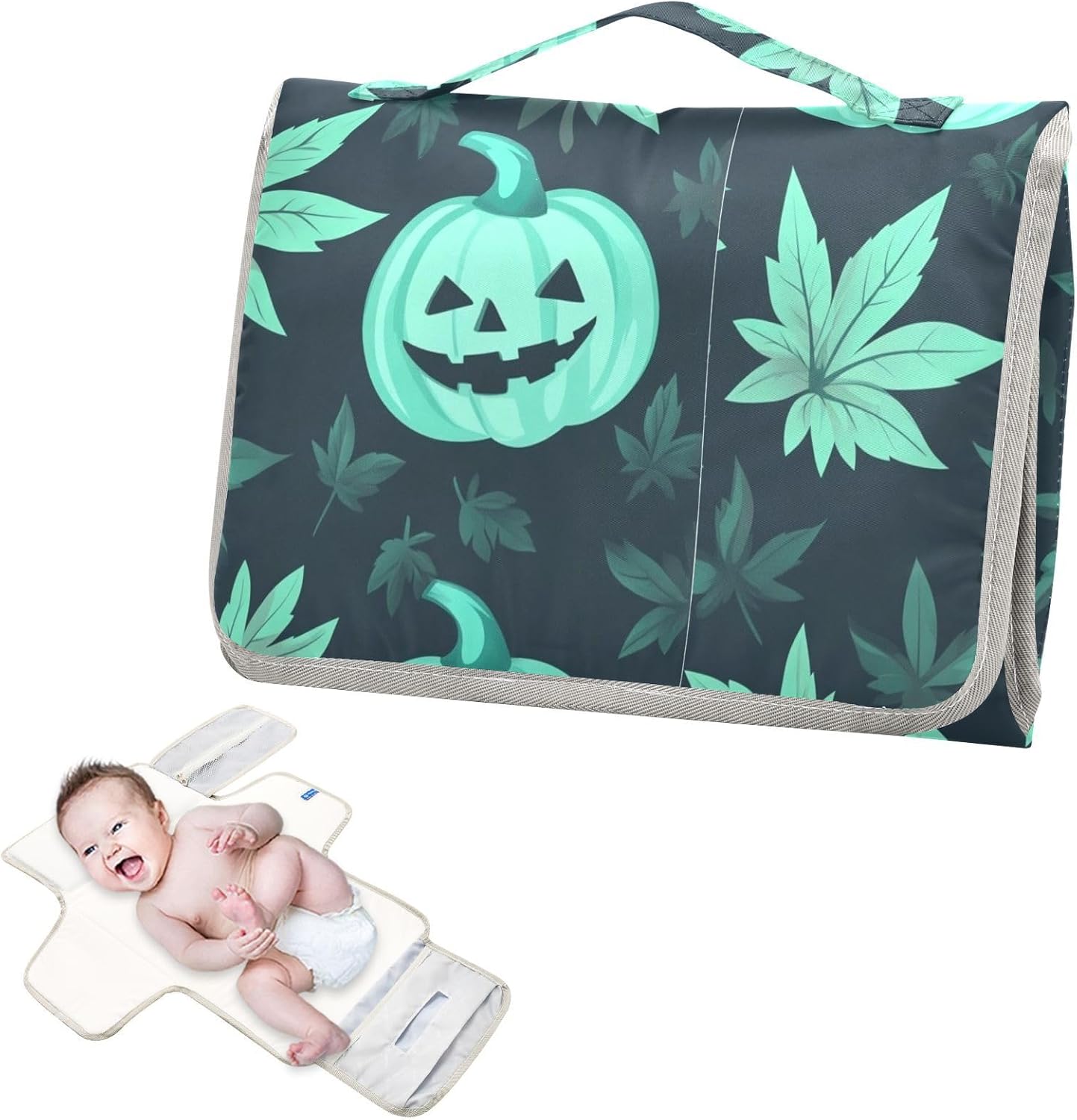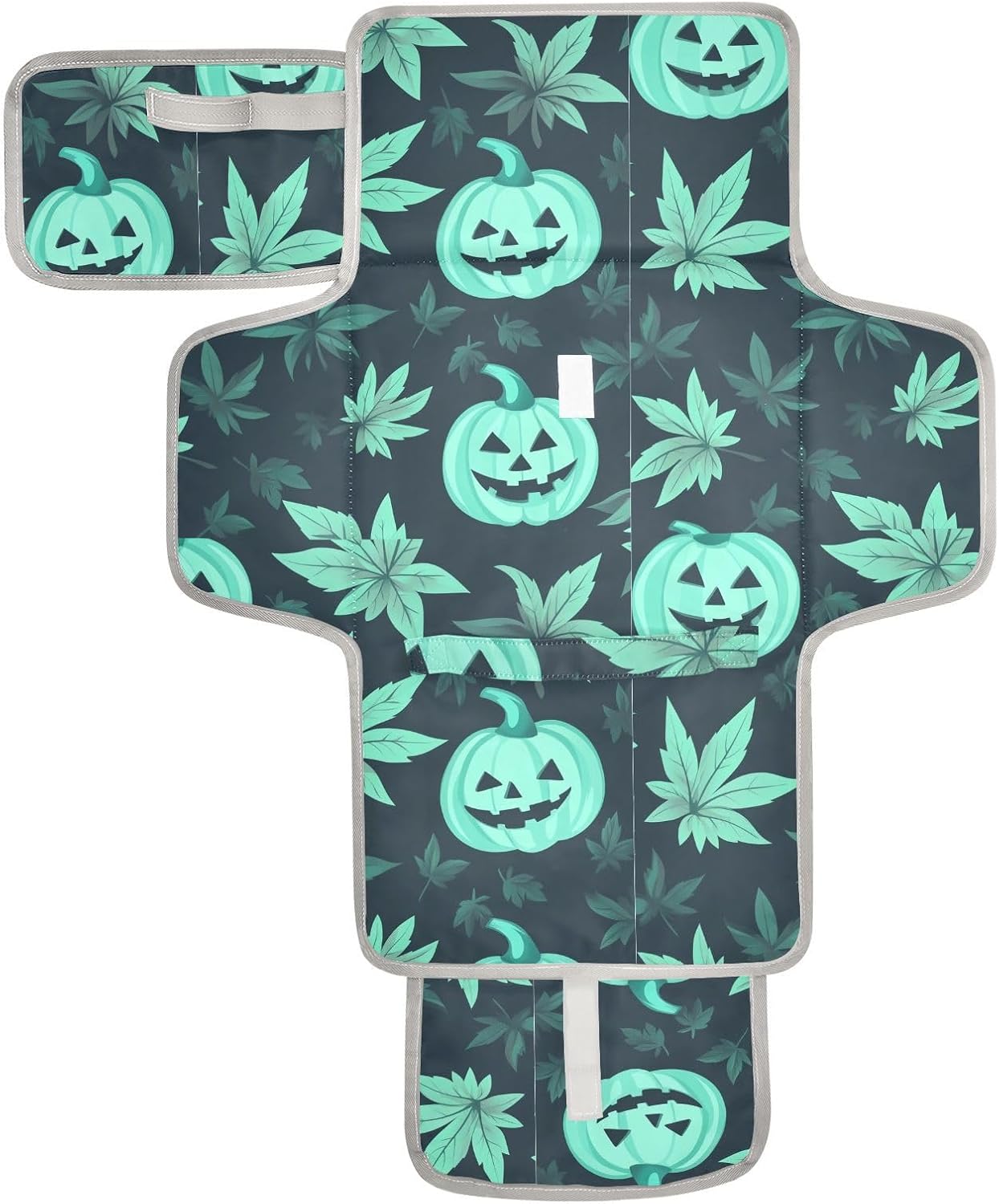 Reusable Baby Changing Pads with Tissue Pocket Baby Portable Changing pad Infant Travel Station Kit Green Halloween Evil Pumpkin Maple Leaf