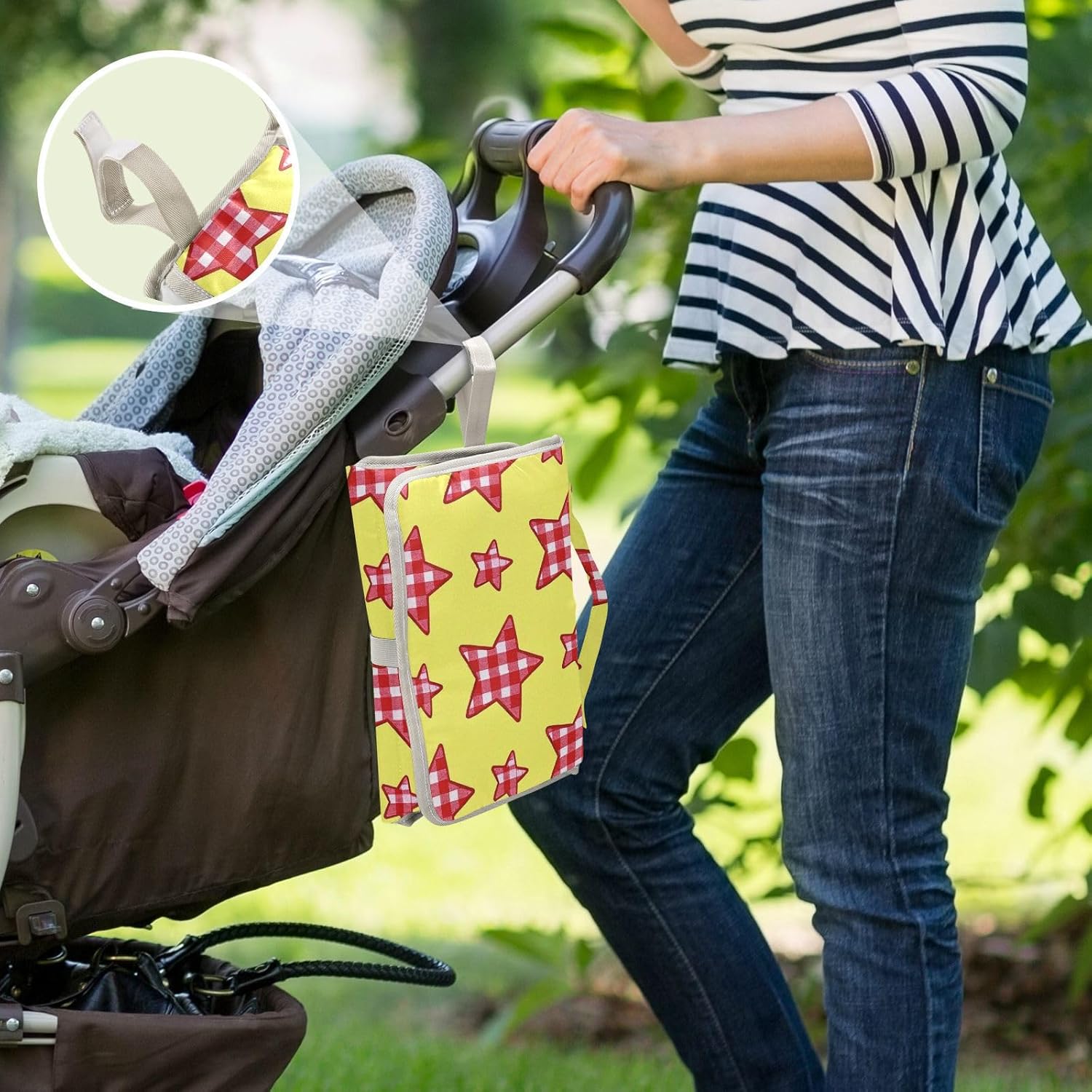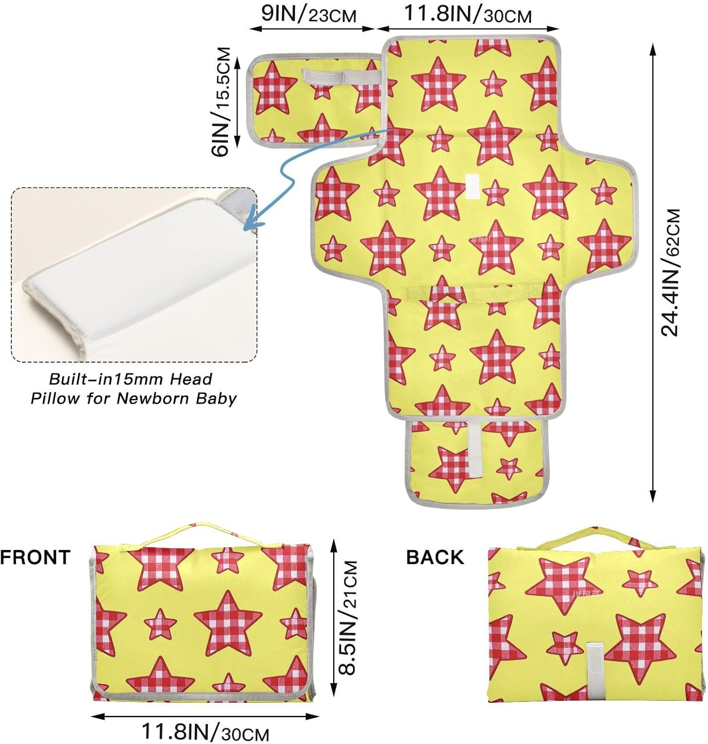 Reusable Cartoon Checkered Yellow and Red Stars Pattern Pads with Tissue Pocket Changing Pad for Baby Baby Travel Station Kit