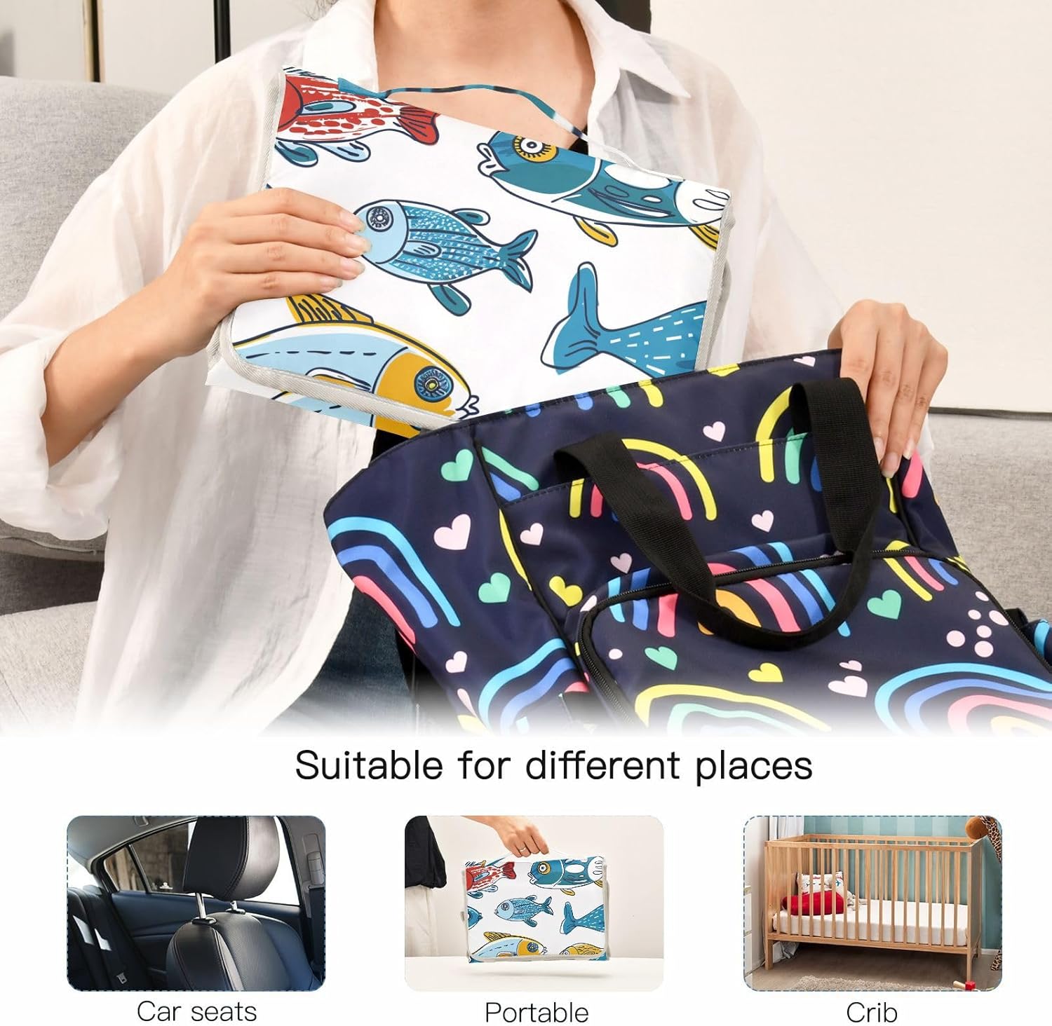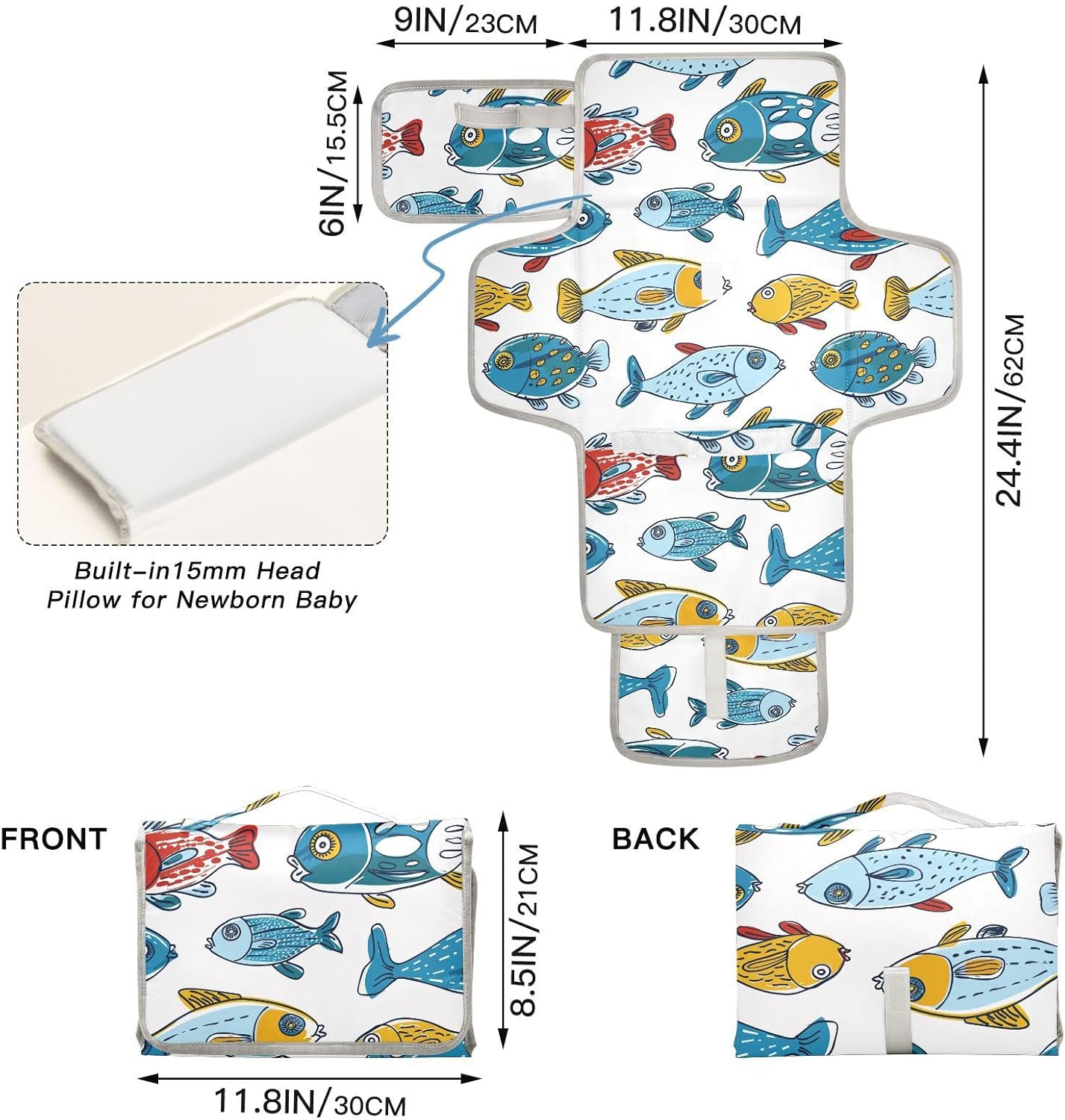 Reusable Changing pad Portable with Tissue Pocket Travel Changing pad for Baby Infant Travel Station Kit Hand-Painted Moldfish