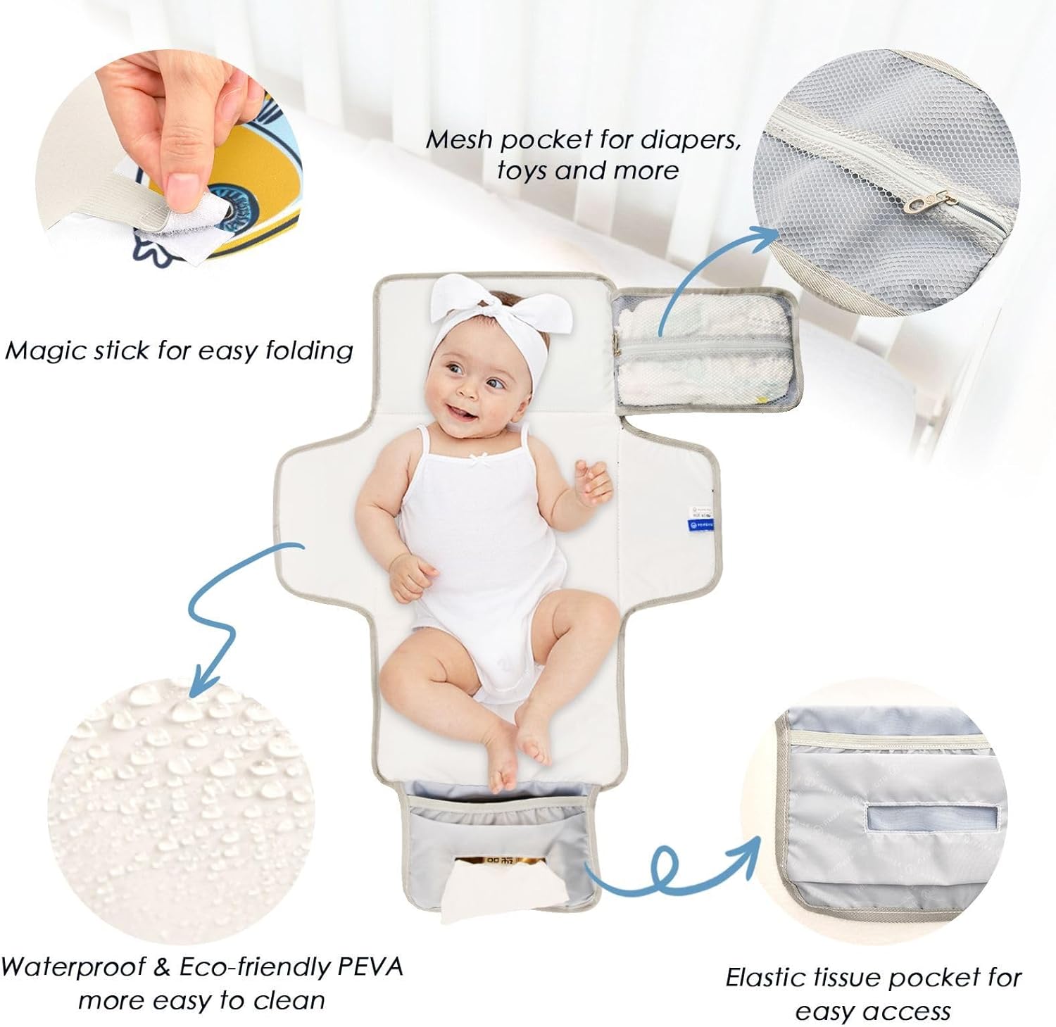 & Free ShippingDiaper Change Anytime, Anywhere – Our baby pee pads with a built-in pillow is your ultimate partner. Whether inside or outside, this diaper changing mat lets you change your baby’s diaper on any flat surface!