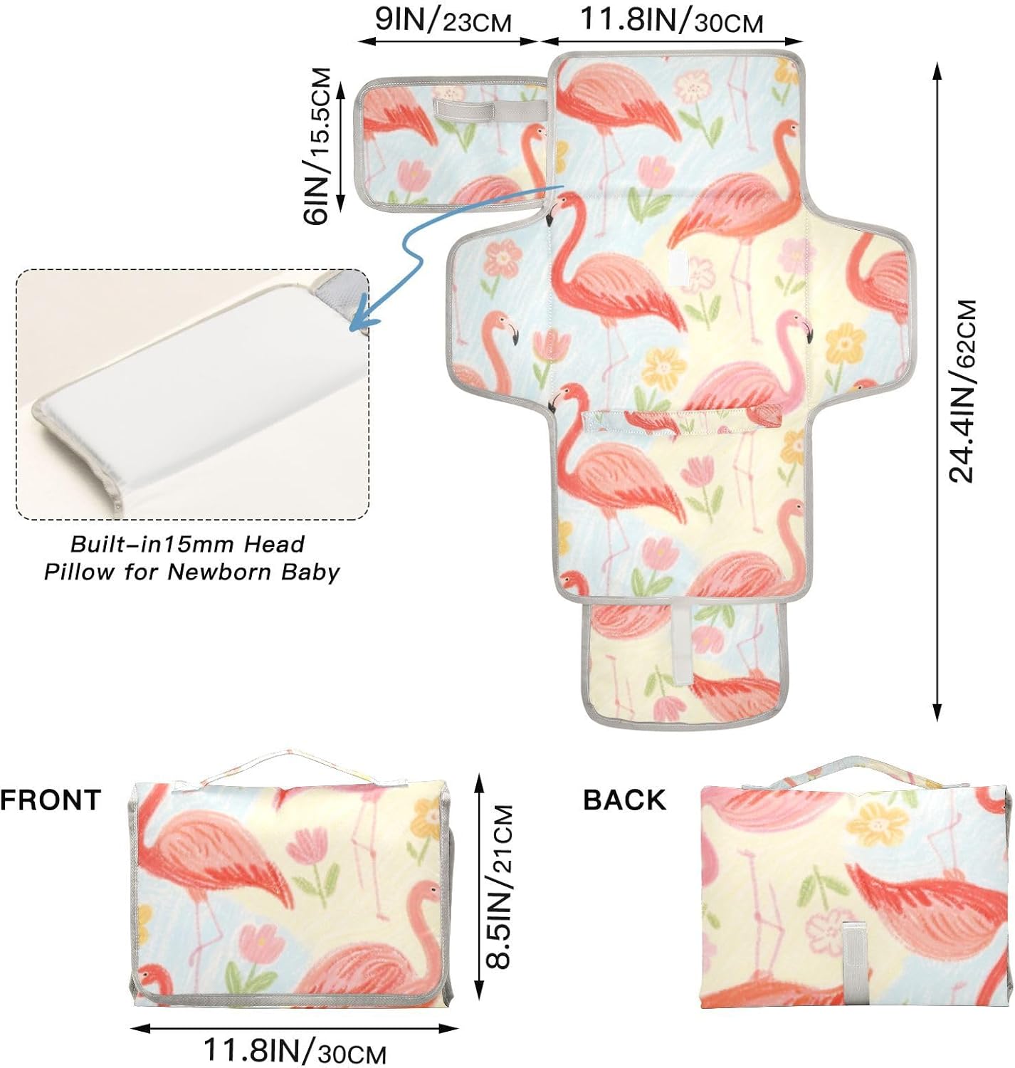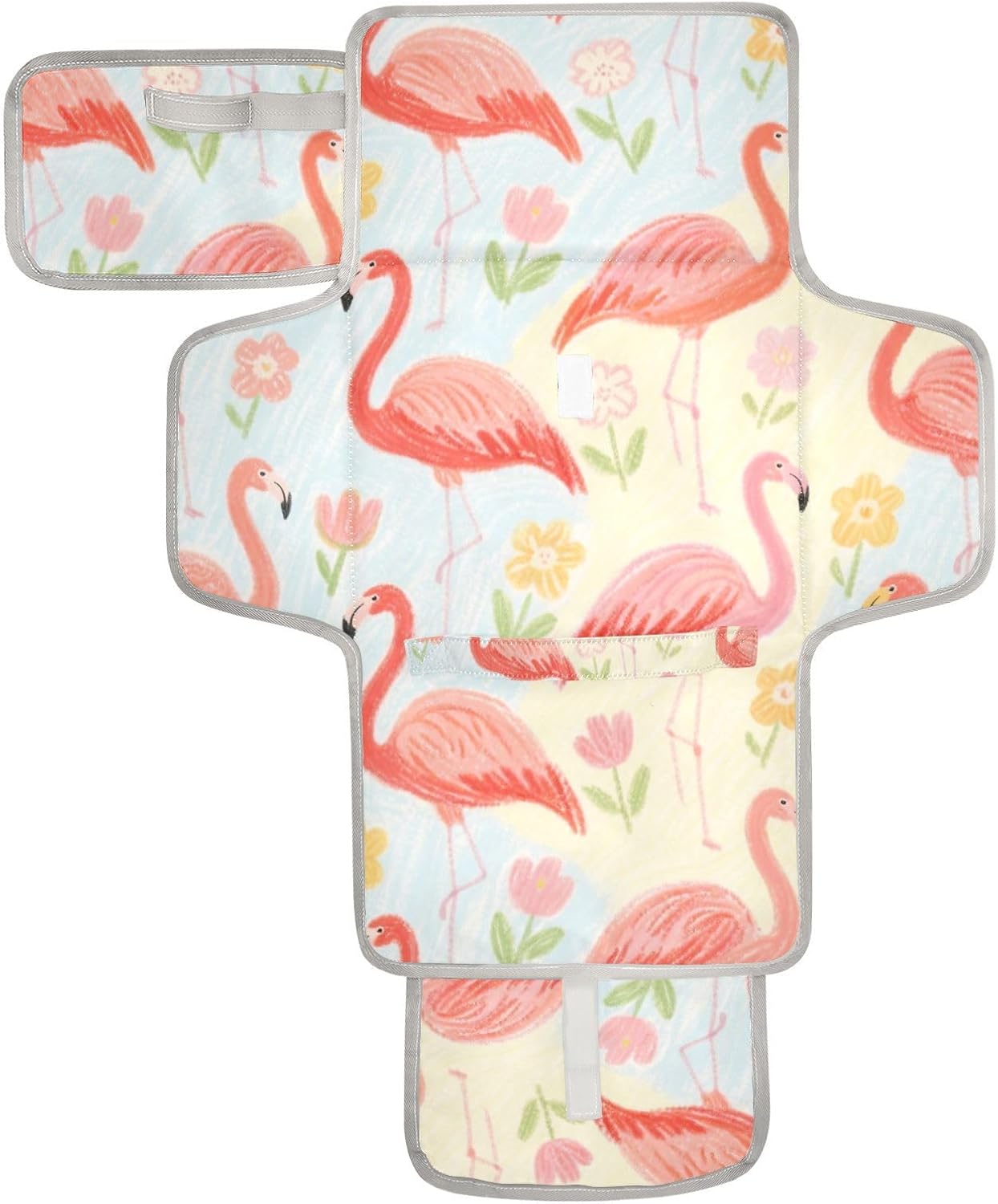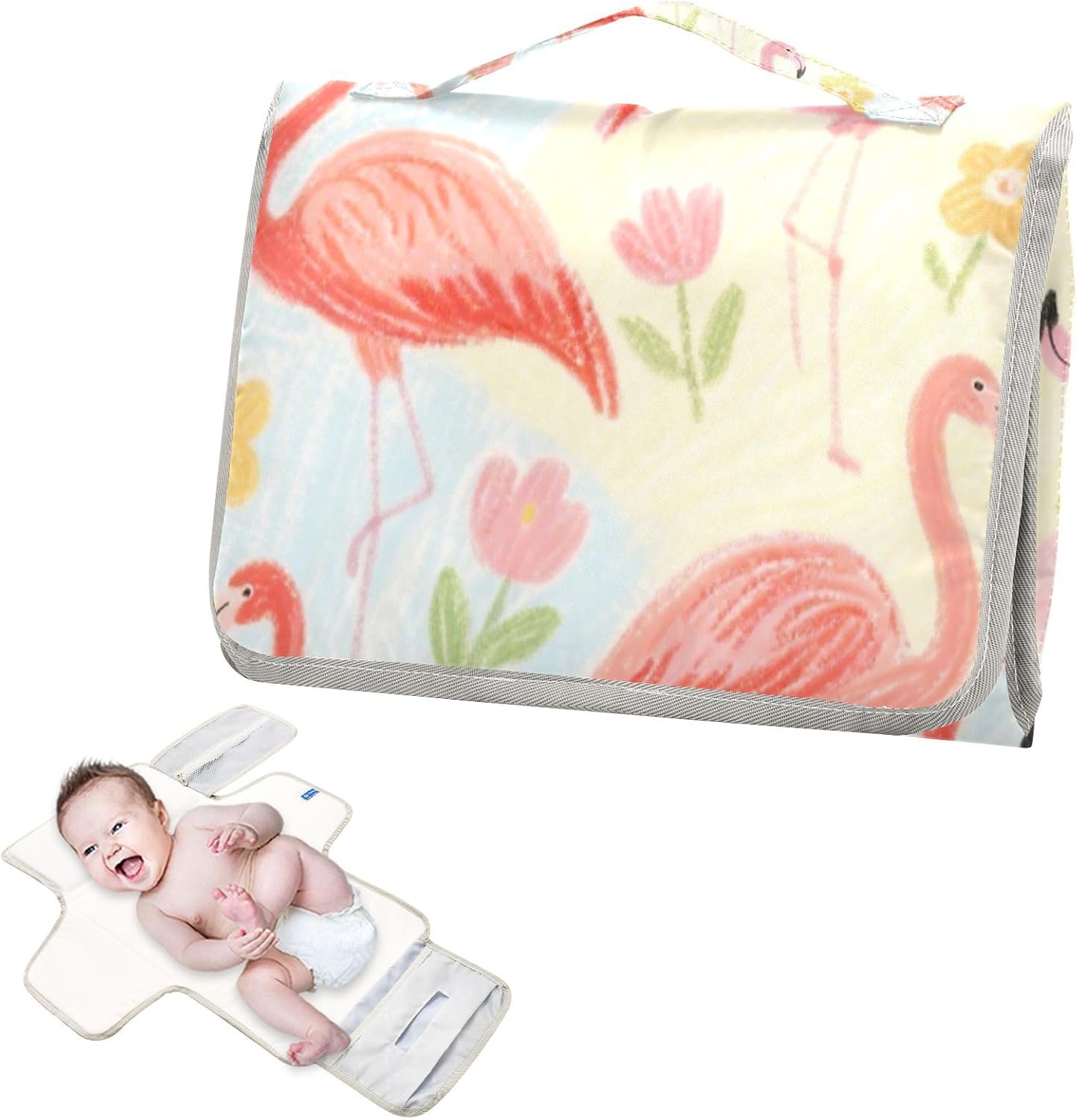 Reusable Changing pad with Tissue Pocket Portable Baby Changing pad Infant Travel Station Kit Pink Girl Flamigo Soft Color Flower