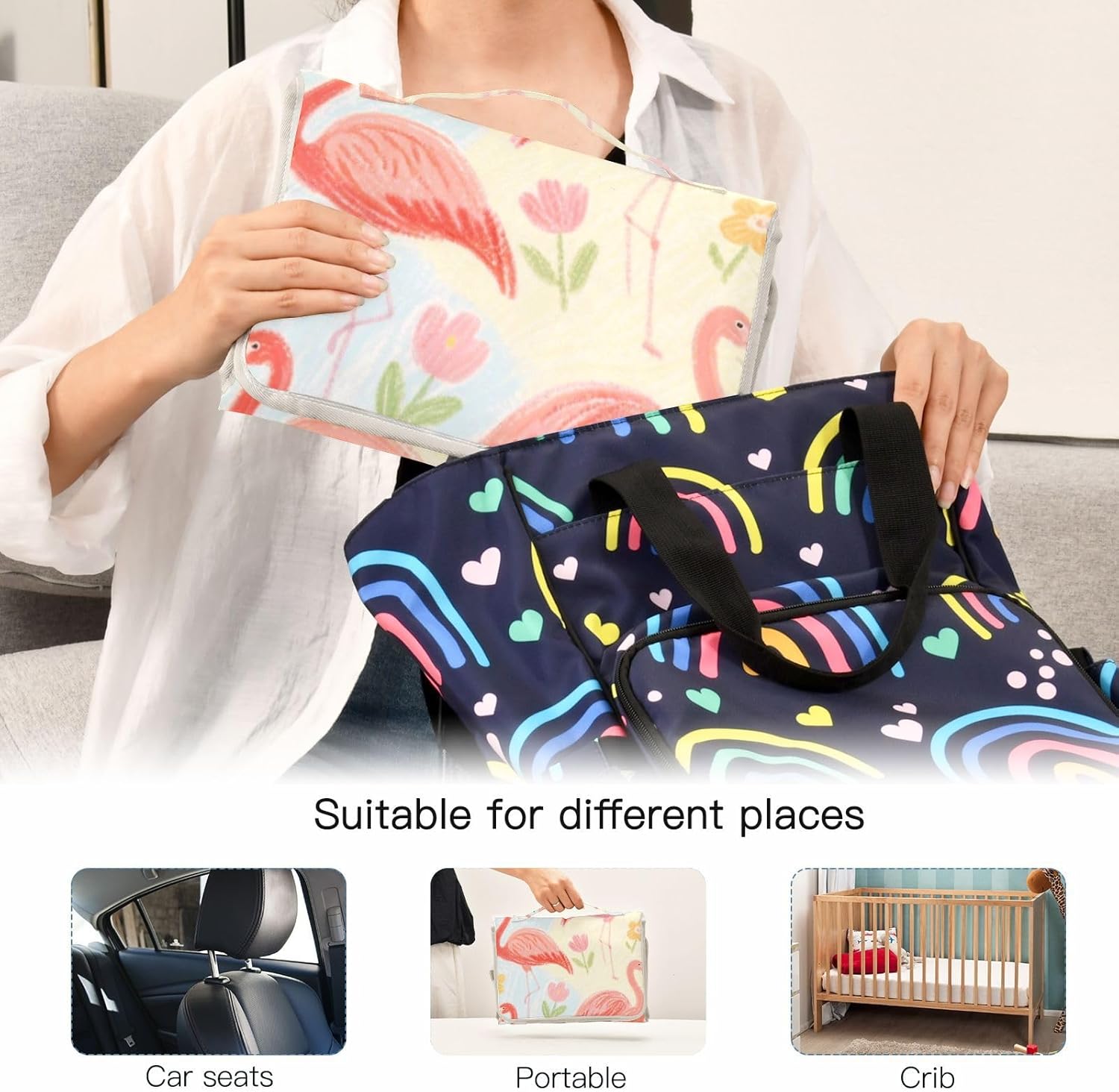 Convenient to Use- Attaches to strollers or diaper bags with the snap-loop handle. The foldable portable changing pad compacts to 11.8×8.5 inches – as lightweight as standard mats and effortlessly fits in wet bags for compact travel.