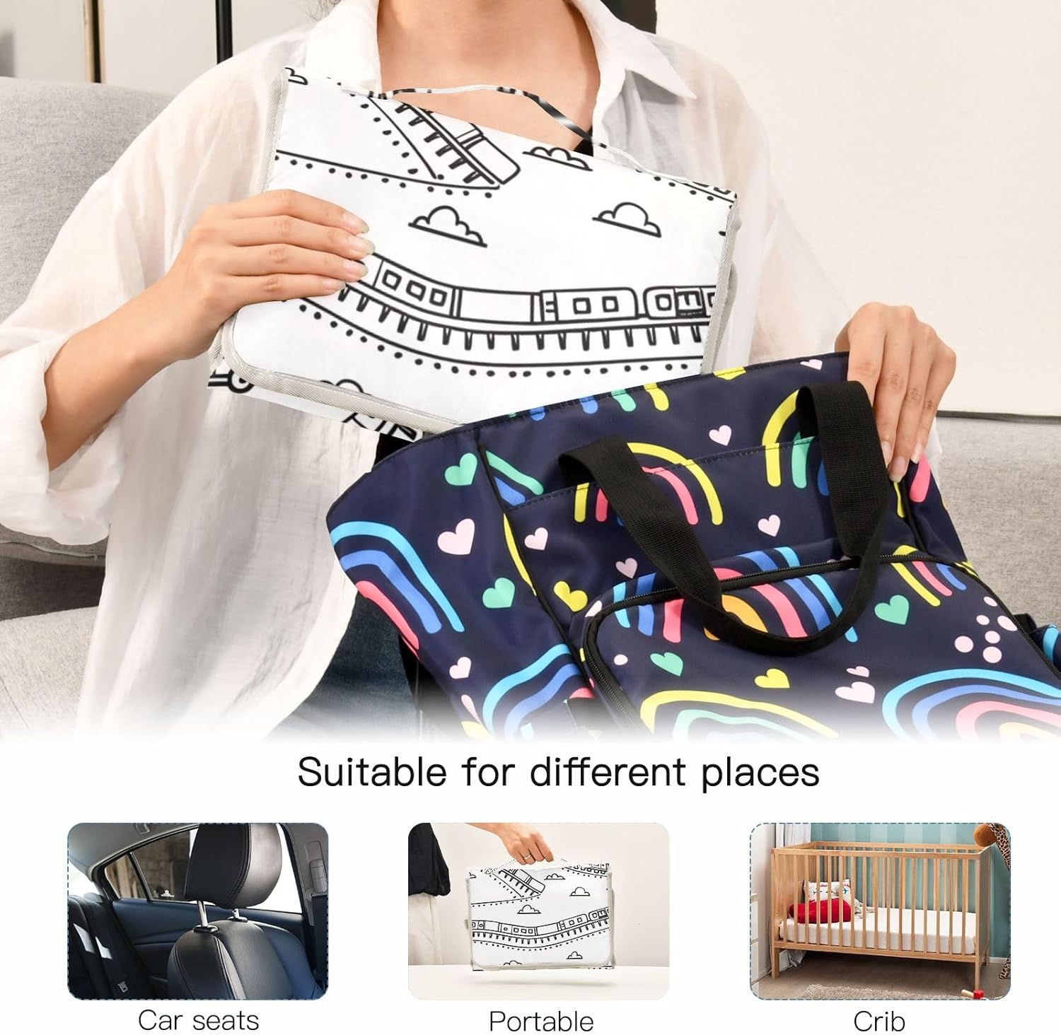 Travel Changing Station-Transform any space to a portable change station with this changing pad baby. The waterproof diaper changing mat blocks leaks instantly, perfect for airports, cars, or public restrooms. It conveniently fits and stores in our wet bags for hassle-free travel.