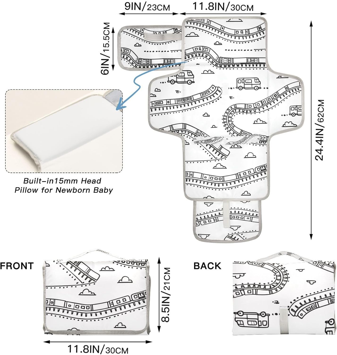 Comfort & Convenience – Our portable changing pad is padded with plush cushioning for added comfort. Comes with a built-in pillow to allow slight elevation for your baby’s head. Experience the exquisite details of our diaper change mat!