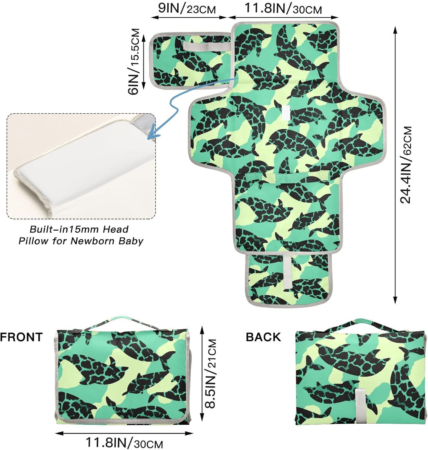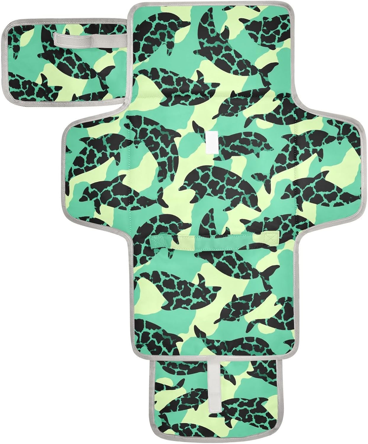 Reusable Portable Changing pad with Tissue Pocket Animal Dolphin Turquoise Print Portable Changing pad for Baby Infant Travel Kit cambiador de pa?ales para Bebes