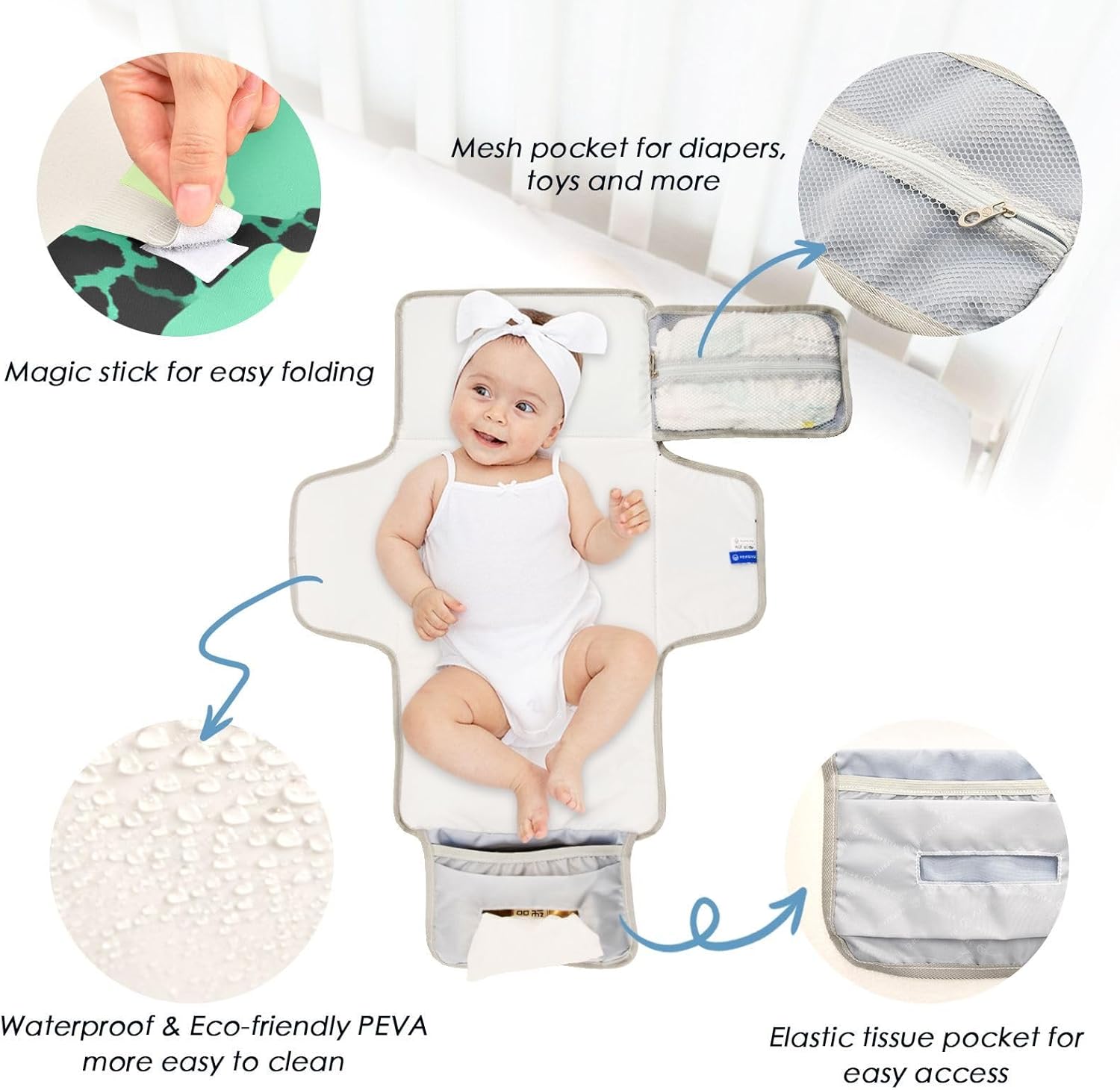 Diaper Change Anytime, Anywhere – Our baby changing pads with a built-in pillow is your ultimate partner. Whether inside or outside, this diaper changing mat lets you change your baby’s diaper on any flat surface!