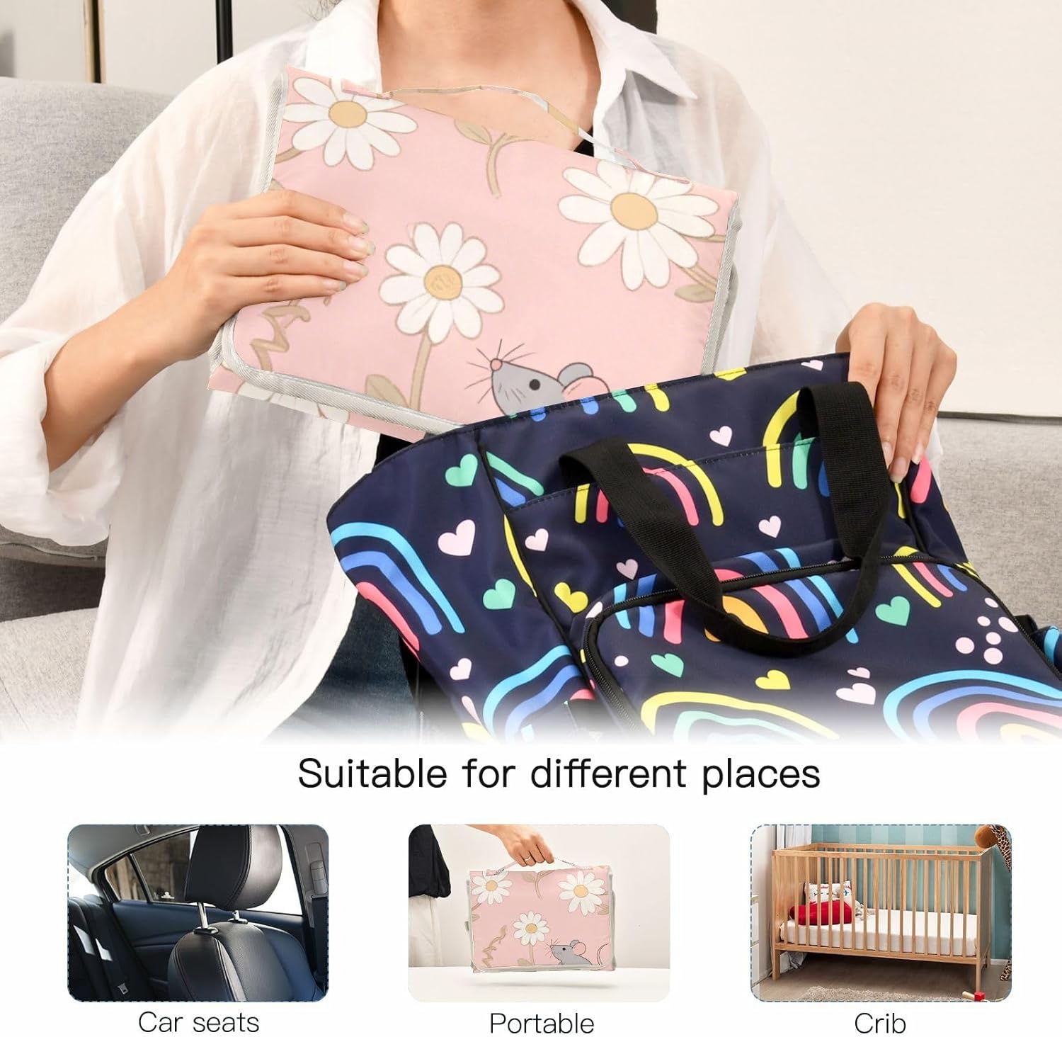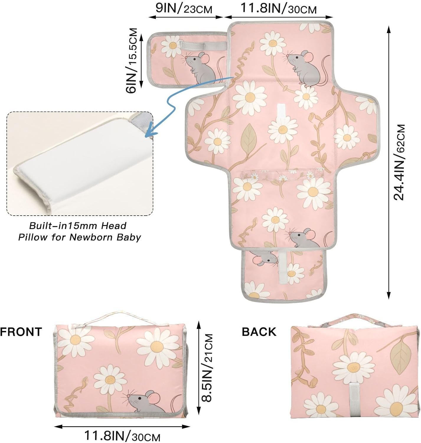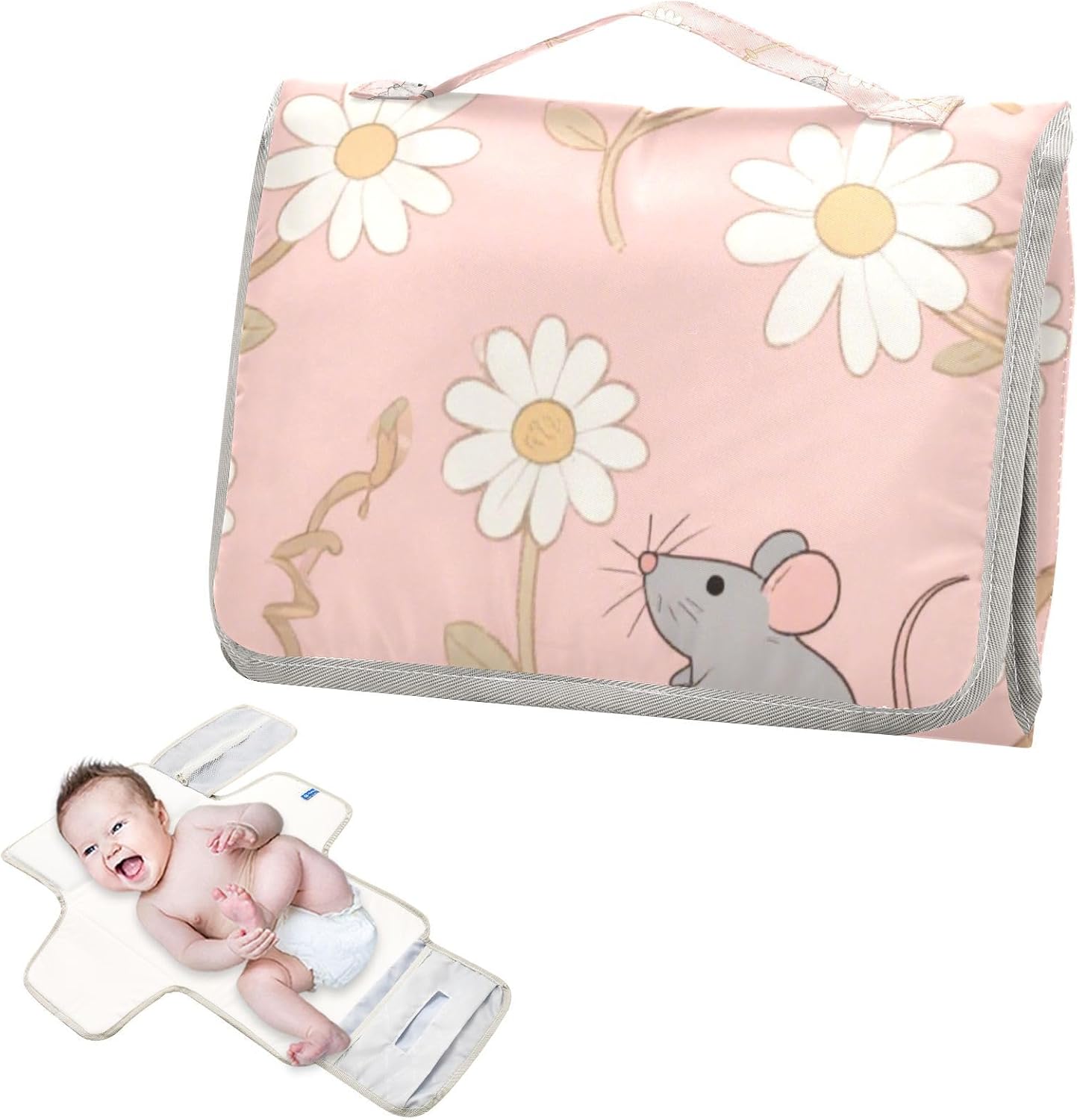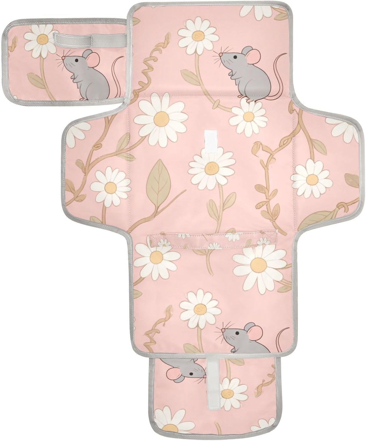 Reusable Portable Changing pad with Tissue Pocket Baby Portable Changing pad Infant Travel Station Kit White Daisy Mouse