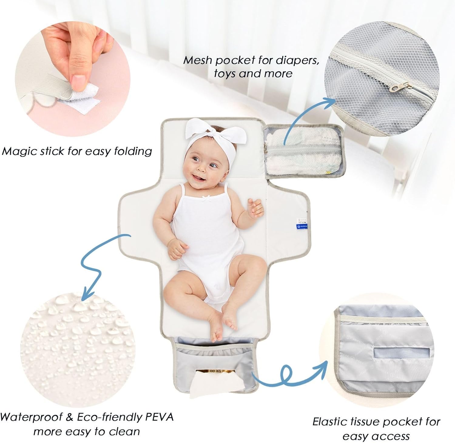 Portable, Reversible, & Reliable – Ourbaby changing mat is lightweight, easy to clean, and safe for babies. This portable baby changing pad has a fold-able design that’s great for travel, and it’s wipe-able and washable, too!