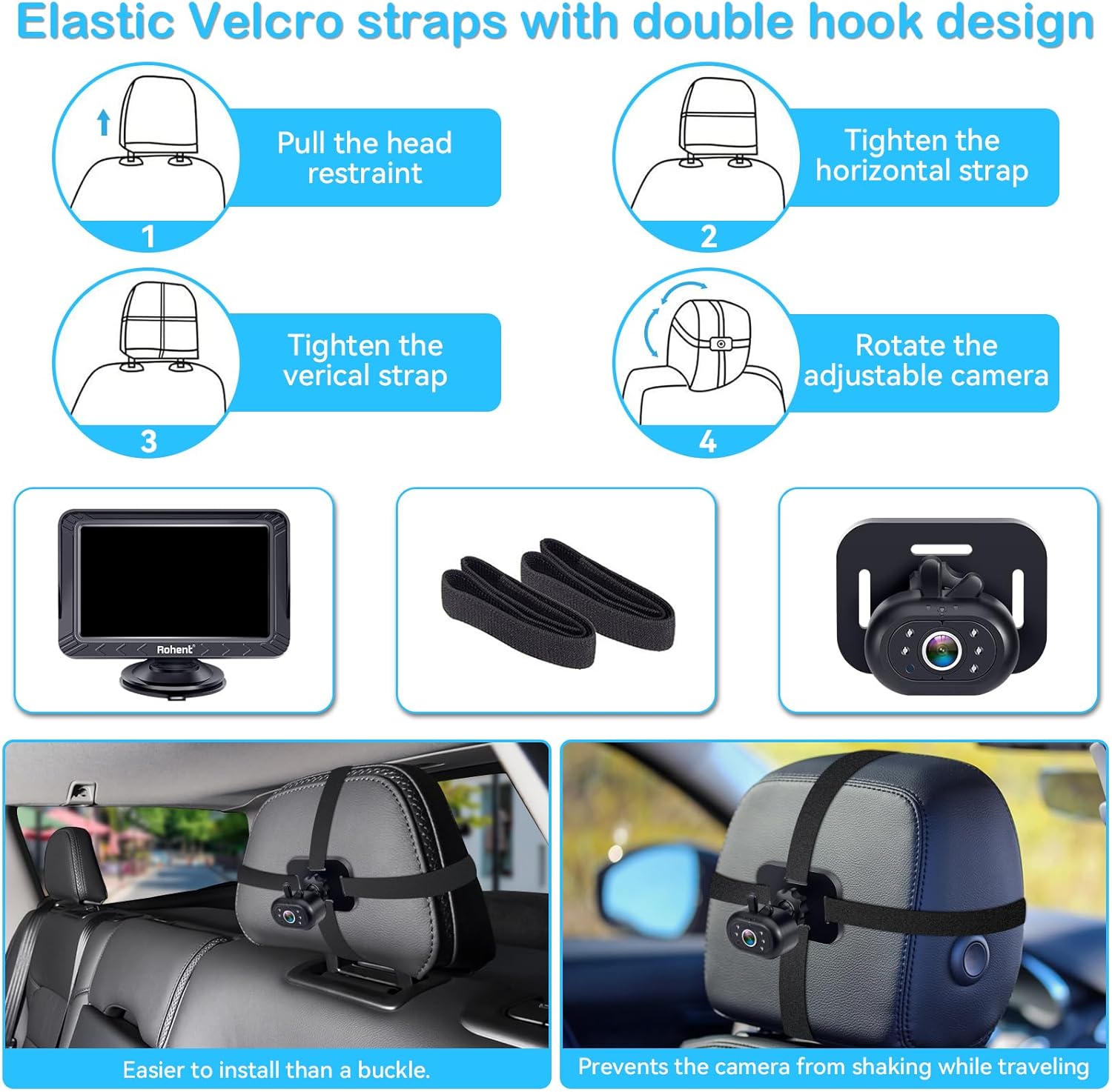 Easy to Install – Hassle-Free Setup (Under 2 Minutes): Set up the camera in under 2 minutes with no tools required. Simply strap it to the headrest, connect the cables, and plug it into your car’s power source. Perfect for busy parents seeking hassle-free convenience and immediate use