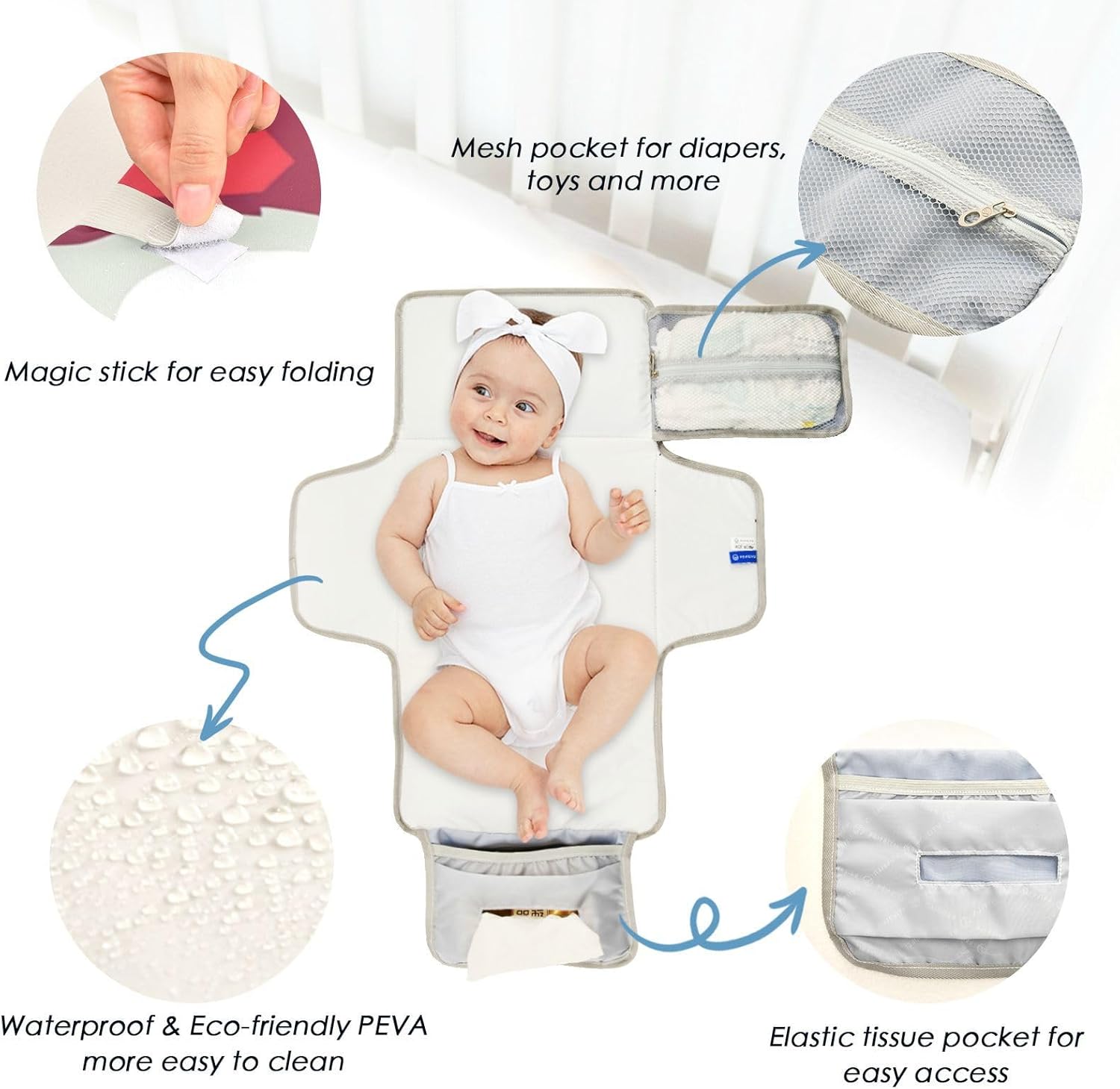Convenient to Use- Attaches to strollers or diaper bags with the snap-loop handle. The foldable washable changing pad compacts to 11.8×8.5 inches – as lightweight as standard mats and effortlessly fits in wet bags for compact travel.